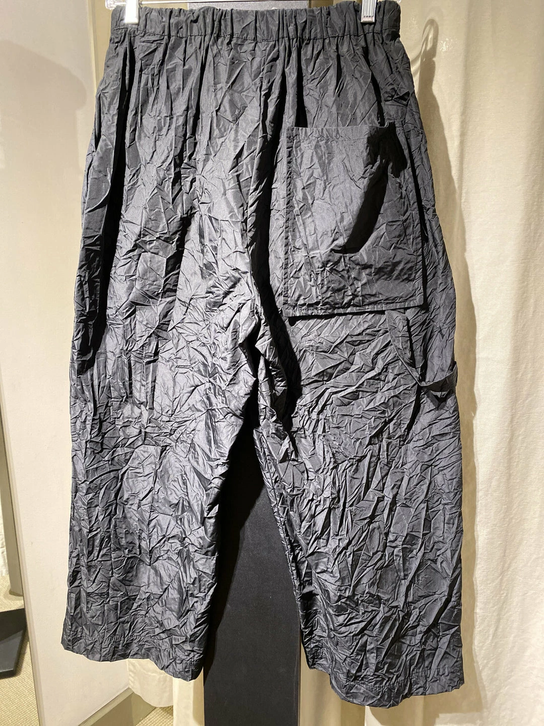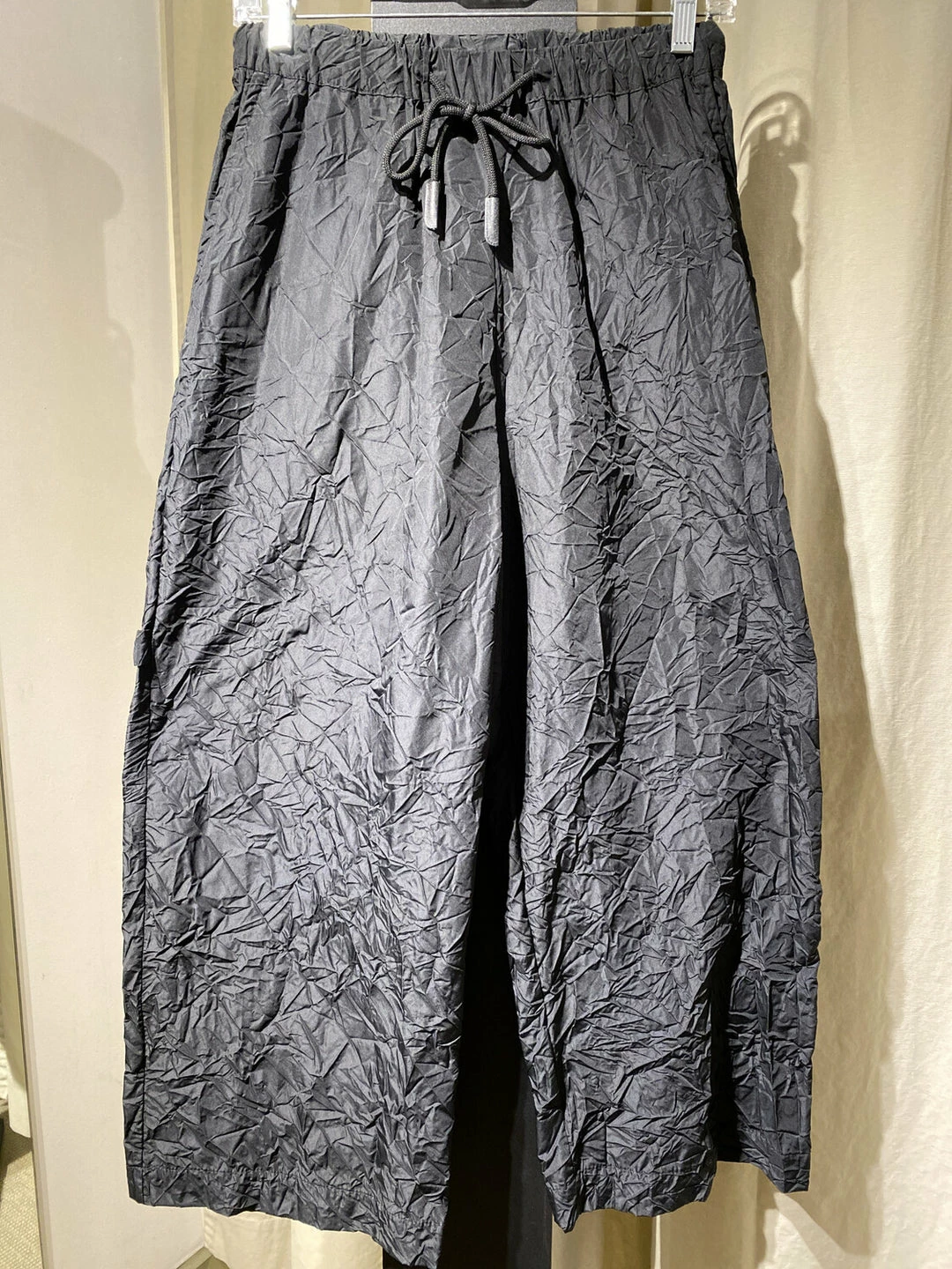 Drawstring crinkle pants are comfortable, wearable & washable. Easy elasticized waistband with drawstring and back pocket.