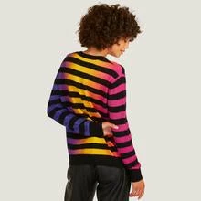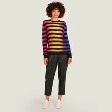 This sweater is made from soft, lightweight Cashmere that feels luxurious as it looks striking. Featuring a colorful striped ombre pattern, it’s designed for a slightly loose fit, so it feels extra cozy. Wear yours with skinny jeans.
