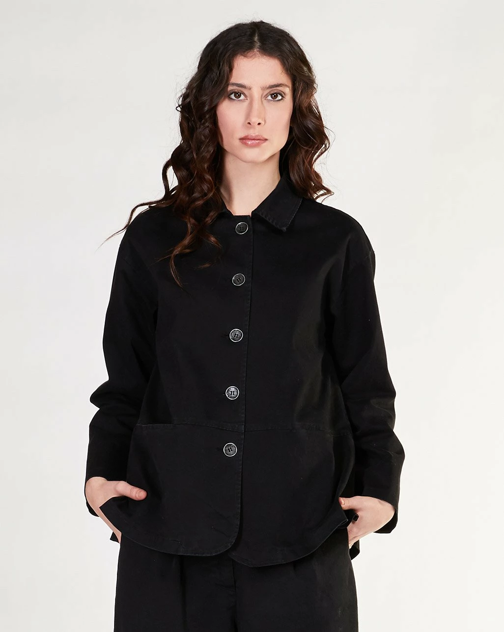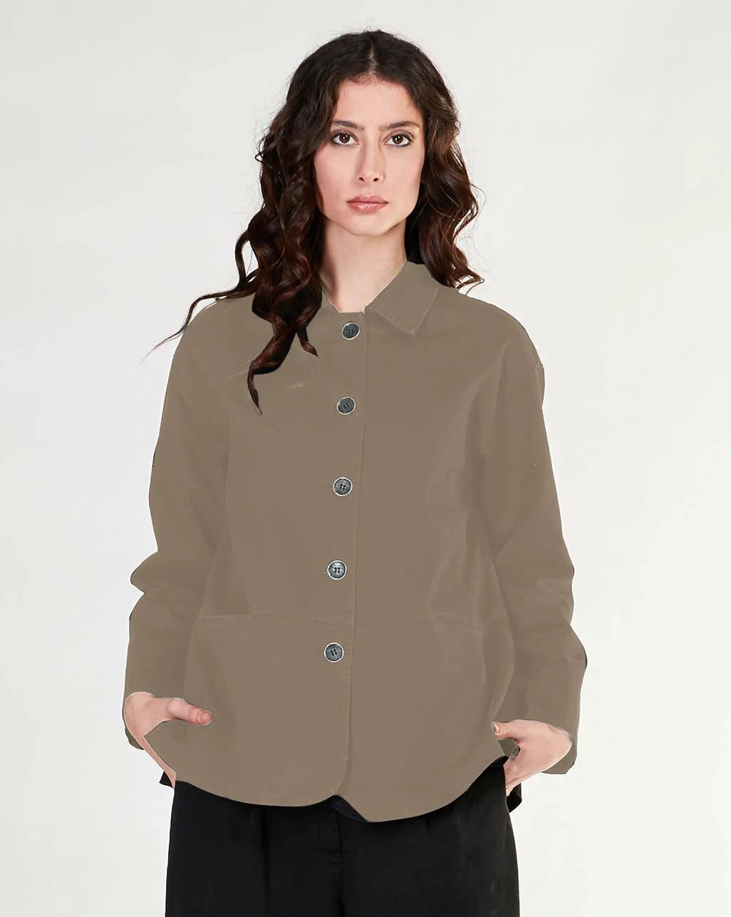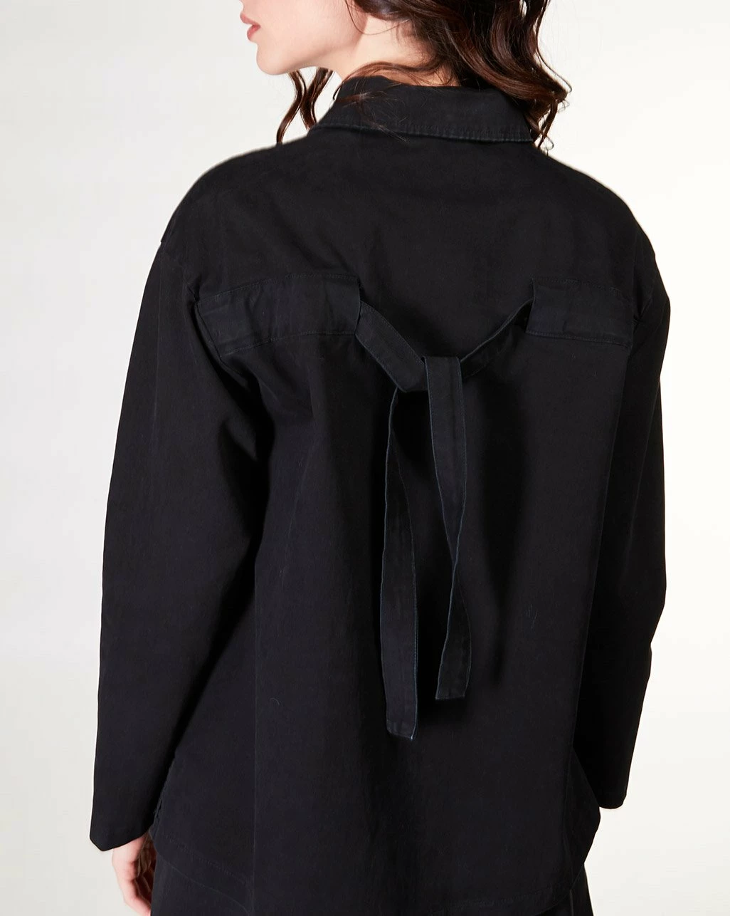 Refine your wardrobe with the Back-Tie Button-Up Jacket. The back-tie gives the jacket more shape and adds a classy look. Front pockets, button and flat collar detailing adds a chic touch to the overall silhouette. The looser fit contrasts well with the elegant look of the tie in the back. With its versatility, the jacket can be styled many ways.