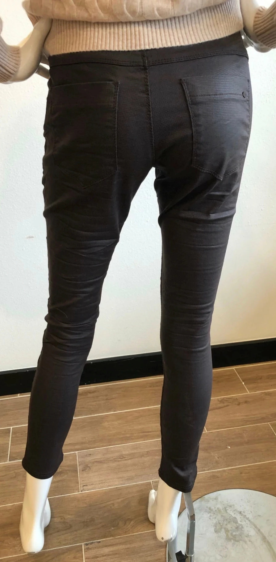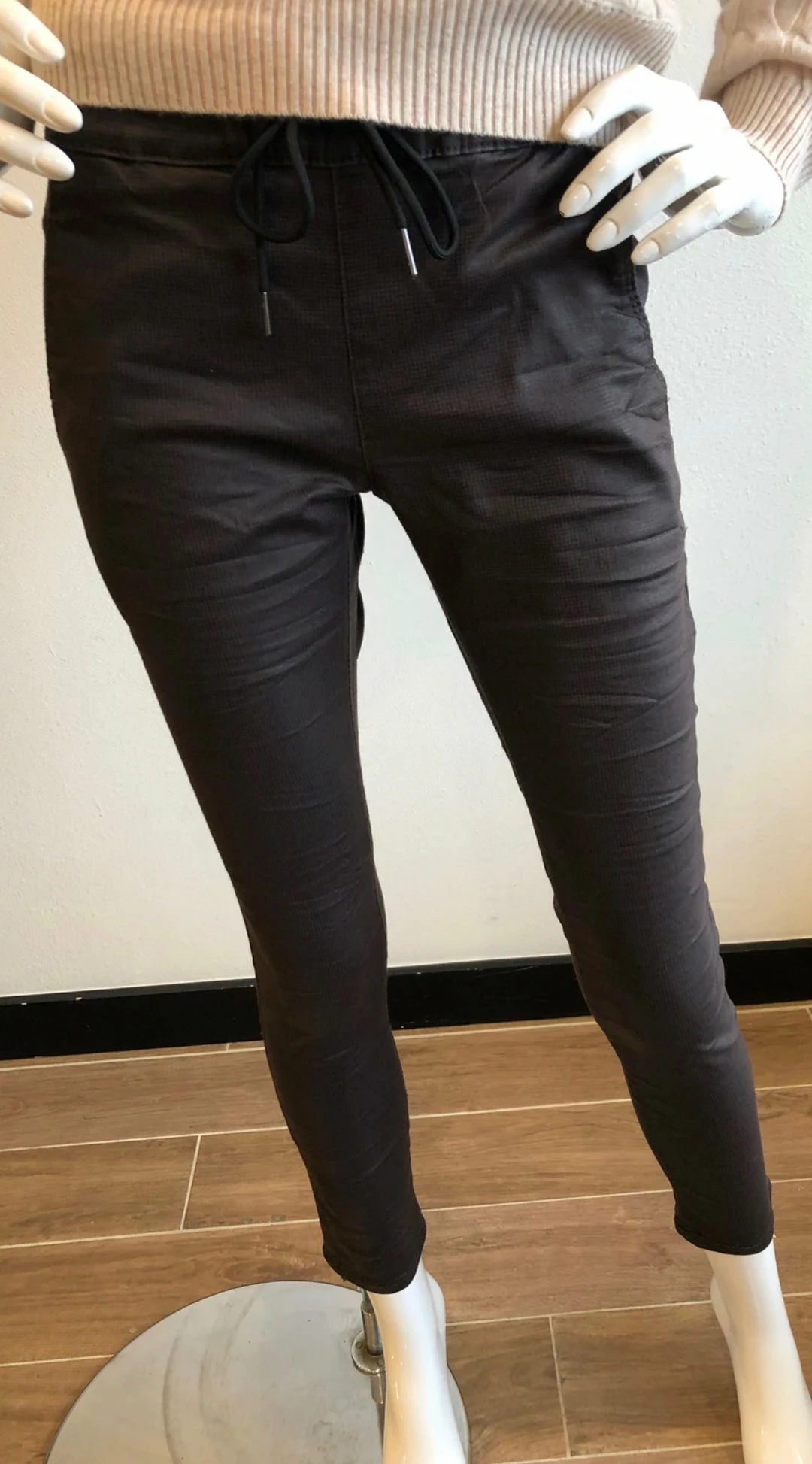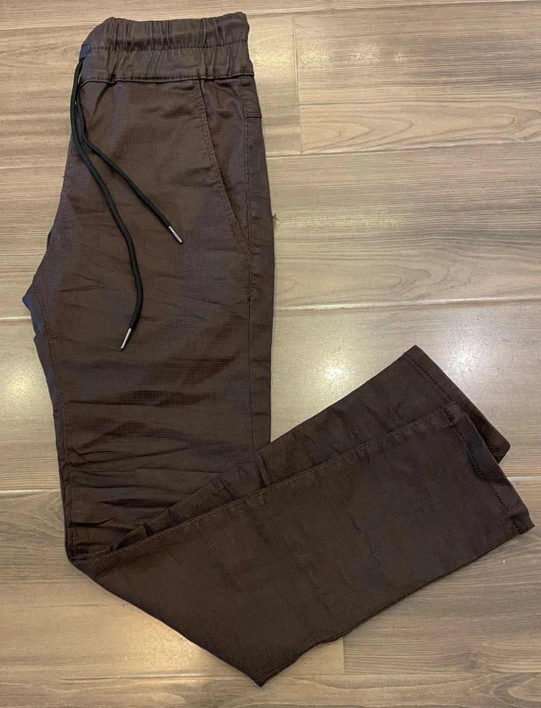 Bevy Flog Pant in original Brown Shely Style with a Tie . 98% cotton 2% Lycra. Machine washable. Does not Wrinkle or Fade. Comfortable, Stylish, Very Flattering. Wear with Sneakers, Sandals, Booties, Heels. Wear it Casual or Dressy for Evening. Try them and you will see why these pants have been the #1 selling item in boutiques all around the U.S.
