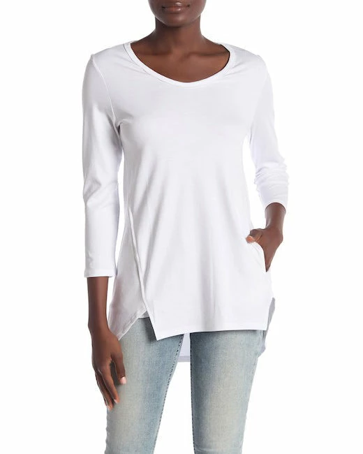 Pockets! Pockets! Pockets! You’ll love this best selling high-low tunic. Straight hem on the front, rounded hem on the back, and did we say pockets? BONUS: made out of our sturdy pima cotton interlock. Pill resistant and opaque.