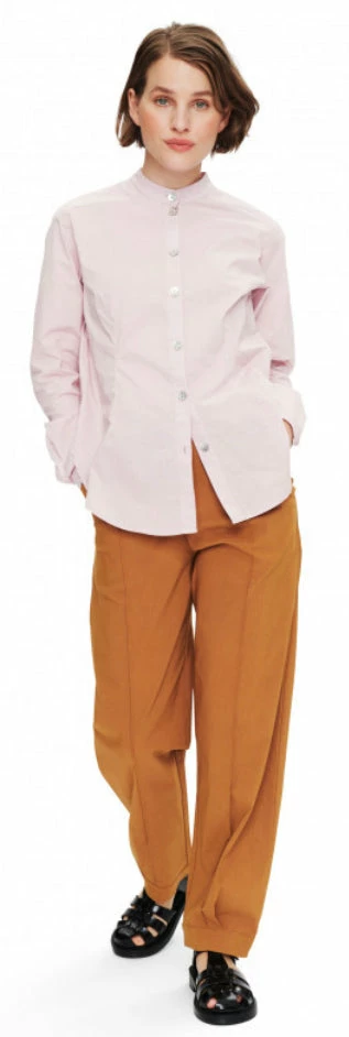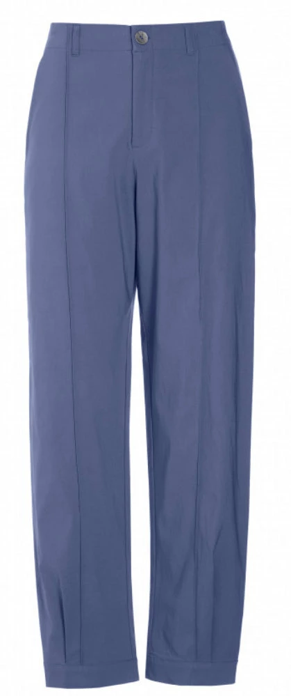 Trousers with a roomy shape that narrows slightly at the bottom, where the trouser leg ends. The trousers have slanted side pockets, belt loops, button closure, a hidden zip, and sewn press folds. The trousers are made of viscose fabric with stretch, so there is good movement. Very practical trousers that work well with flat sandals and a t-shirt, as well as with a short jacket and trainers.