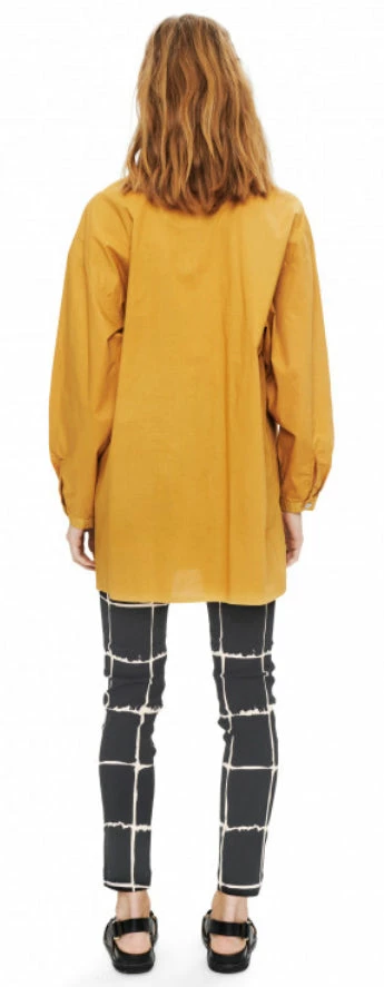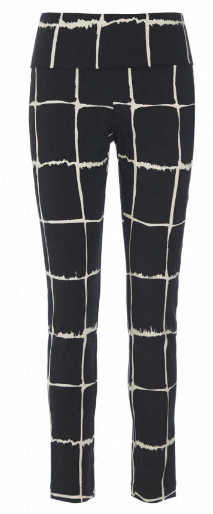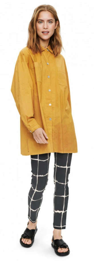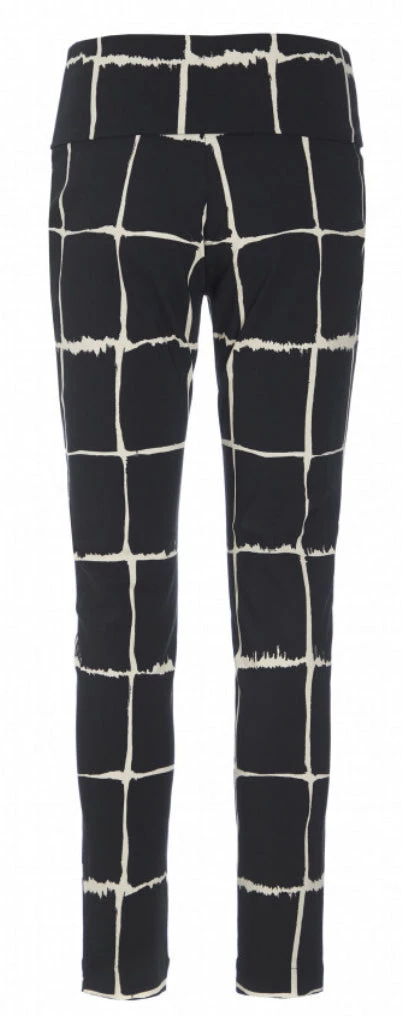 Tight-fitting trousers with stretch, which gives good movement. The wide waistband can be pulled up above the stomach or folded down to ordinary waist height. This effect makes the trousers very comfortable to wear. The eye-catching check pattern gives a beautiful graphic expression. And the trousers are ideal to wear with a white oversized shirt or a top with another black and white print for a lovely pattern mix.