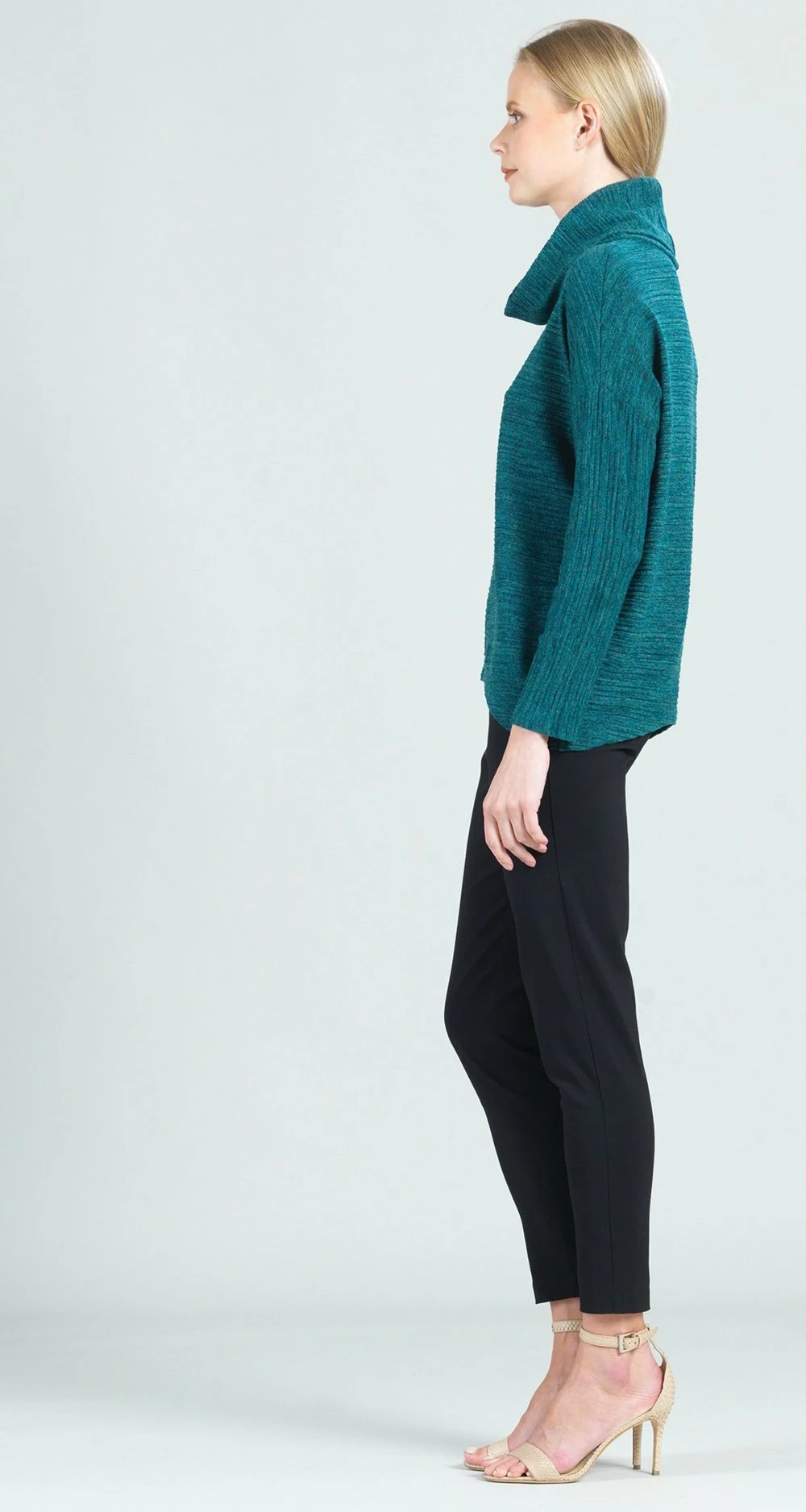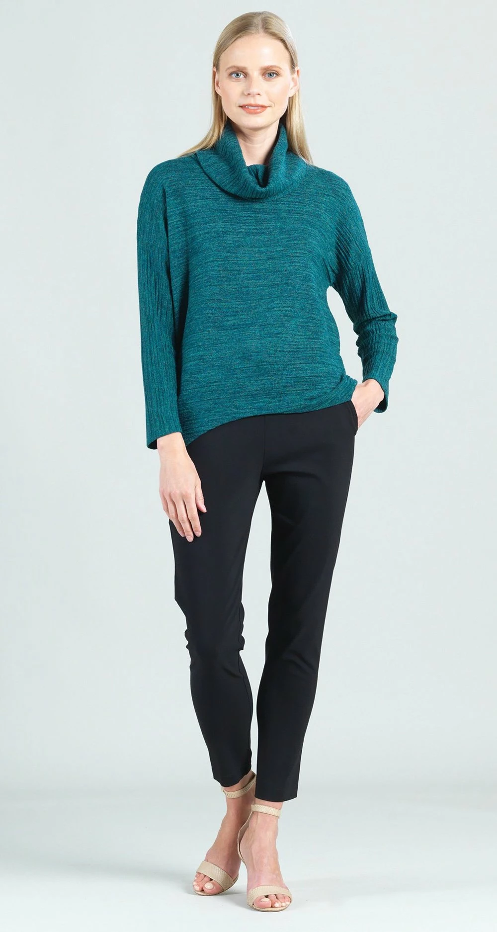 Our Soft Open Ribbed Tipped Hem Sweater Top will have you tipping the fashion scales! This sweater features a cowl style turtleneck, long sleeves and a tipped hemline.