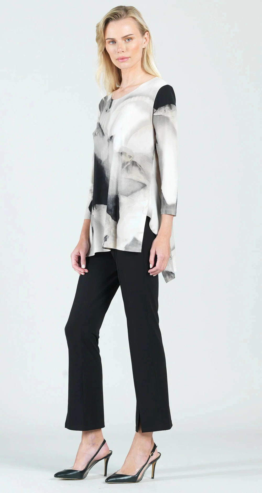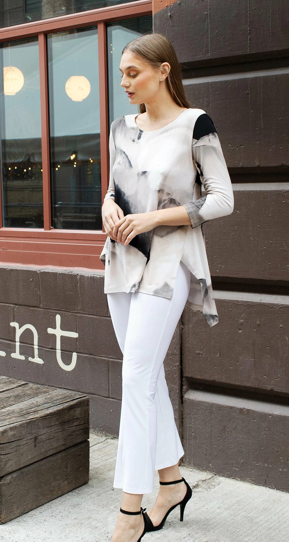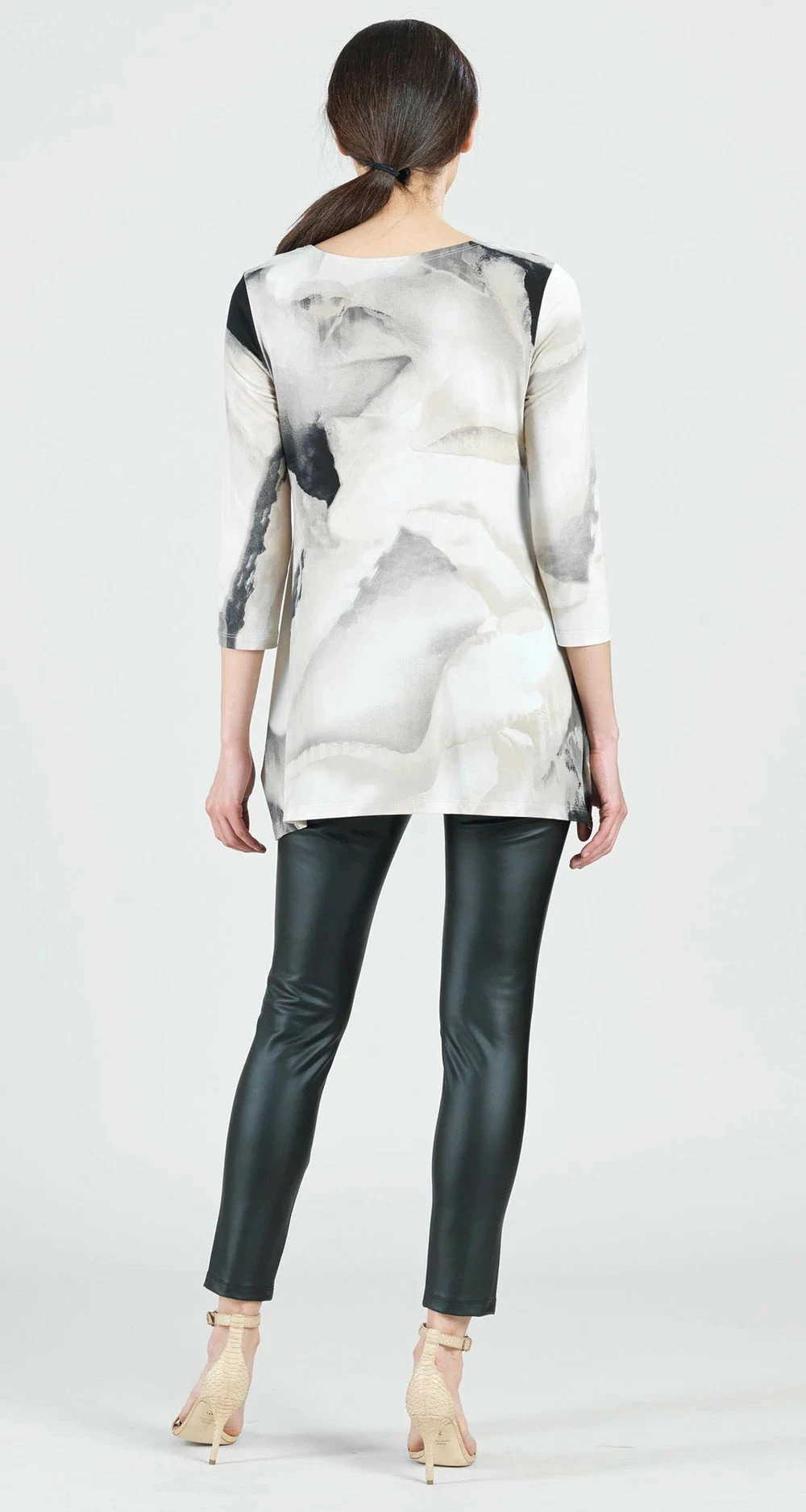 Our Watercolor Parachute Hem Tunic is the calm in a fashion storm! Featuring a round neckline, 3/4 length sleeves, and a side vent parachute hemline.
