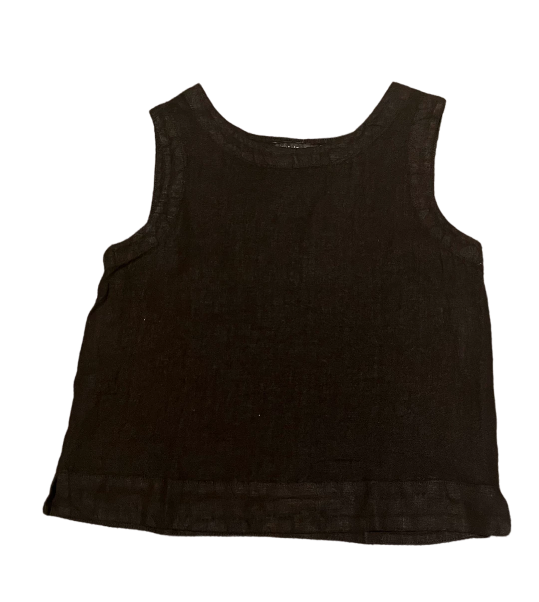 Shell – Wide Top in linen. Scoop neck sleeveless top with deep hem with side splits. Fabulous little linen top in several colors. Perfect over jeans or linen trousers – a great basic addition to your wardrobe!