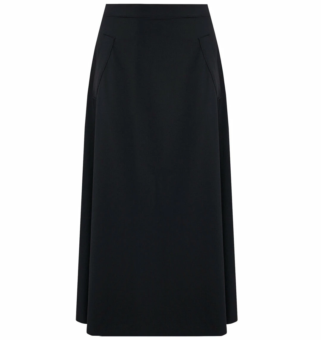 Simple and Clean style skirt with pockets in their comfortable tech fabric. Color: Black.