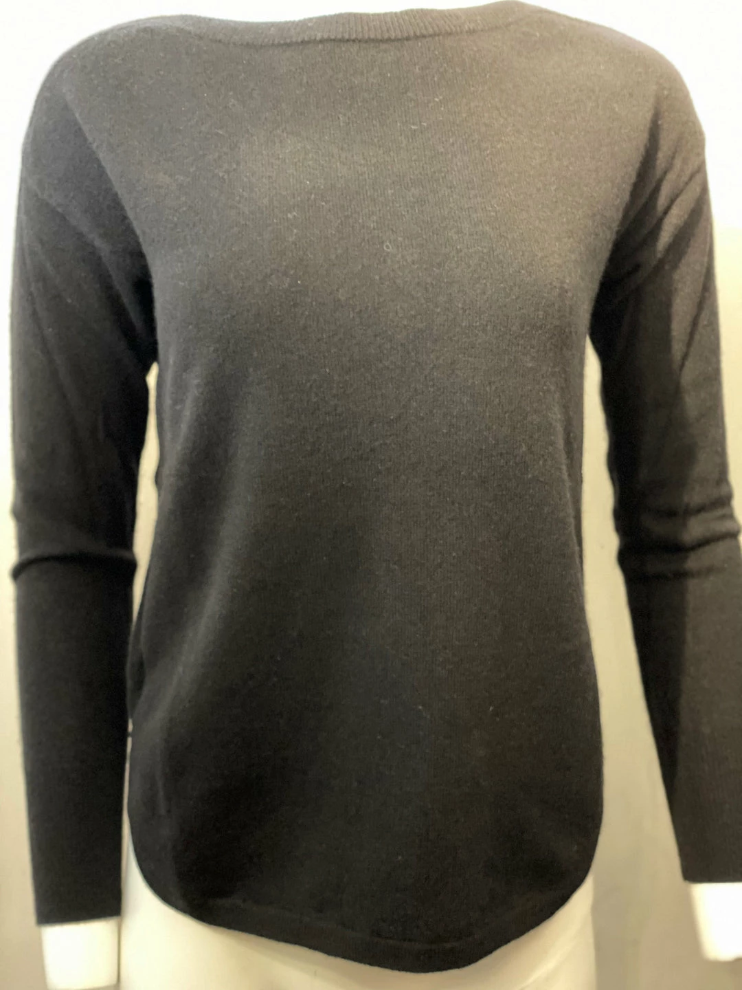 Boatneck cashmere sweater with curved hem and slits at sideseams