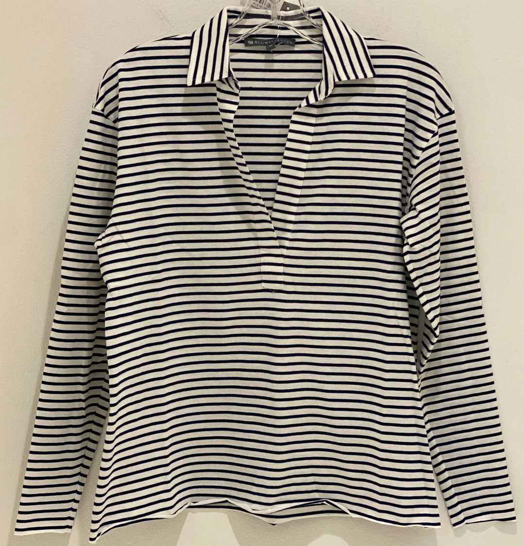 Elliot Lauren Blue/White Striped Long Sleeve Polo Top