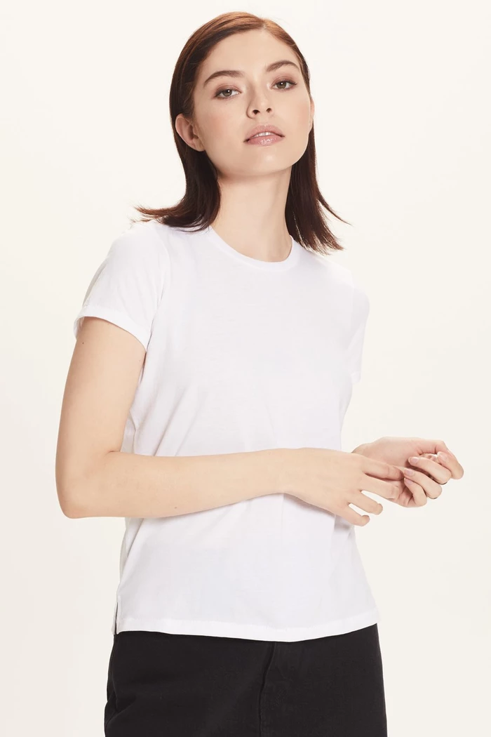 Goldie Tee Epitome of cool: this pared-down, laid-back layer has a boxy cut, slits at each side, short sleeves and a soft, comfy feel.
