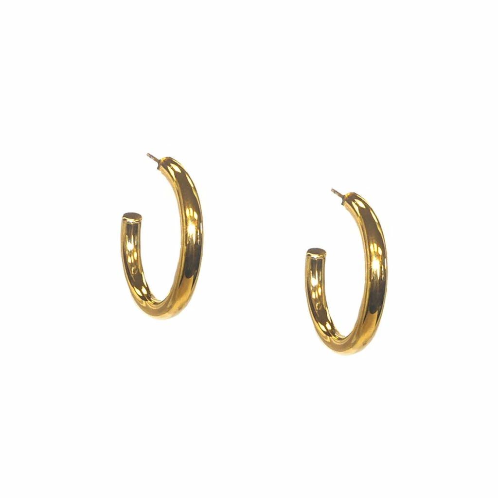 shiny metal, stainless steel hollow hoop with post backing.
