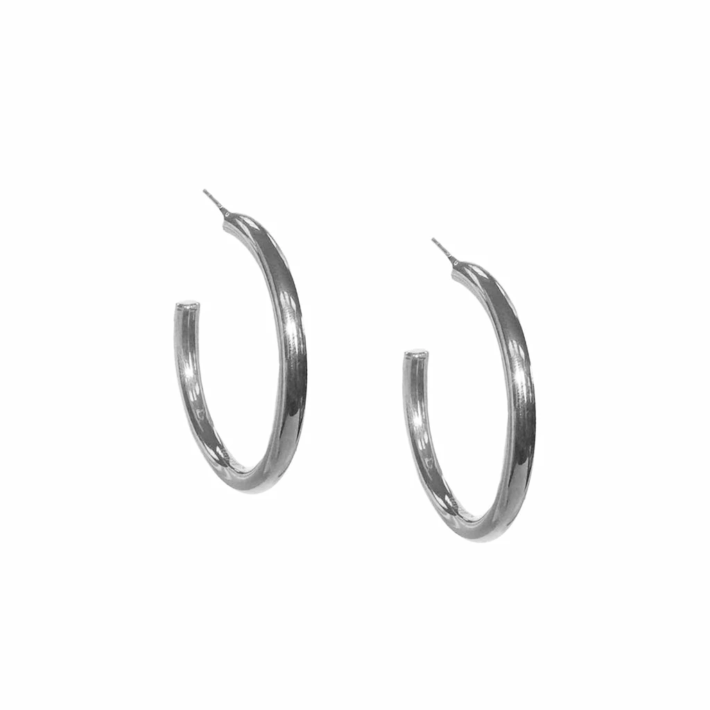 shiny metal, stainless steel hollow hoop with post backing. 1 5/8″