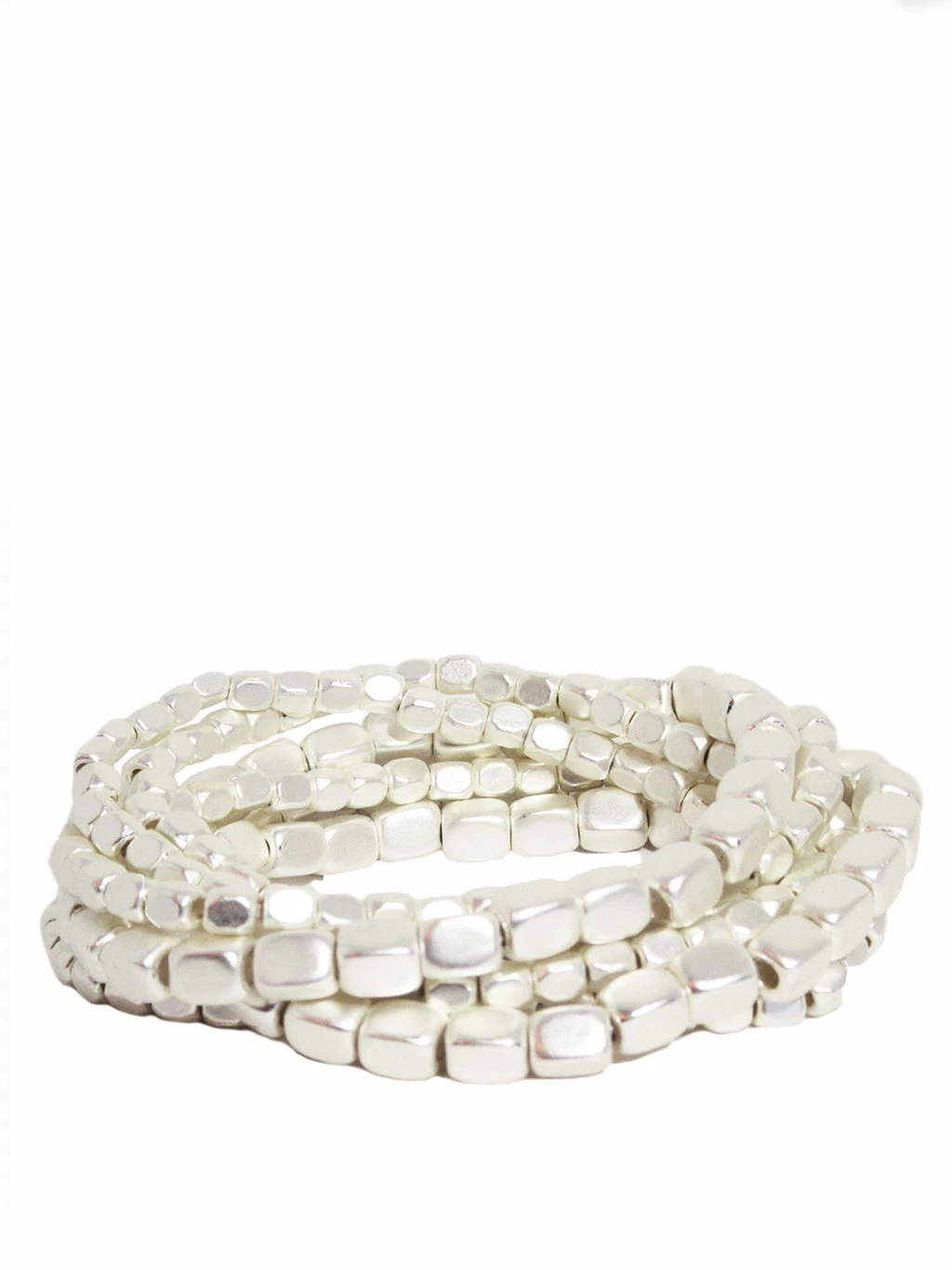7 Strand metal bead stretch bracelet. Can be worn individually or in multiple layers. Elastic stretch for comfortable wear.