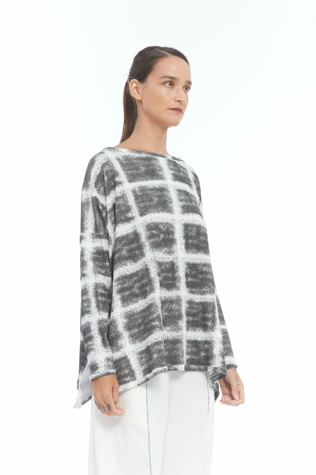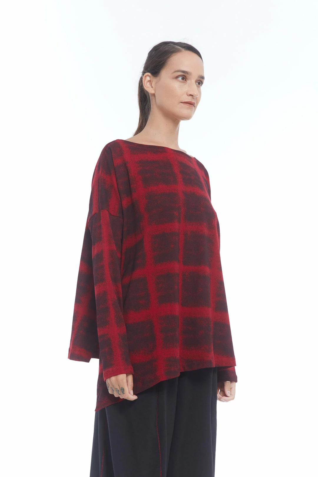 Classic MxMATTHILDUR asymmetric bottom box top with long sleeves.