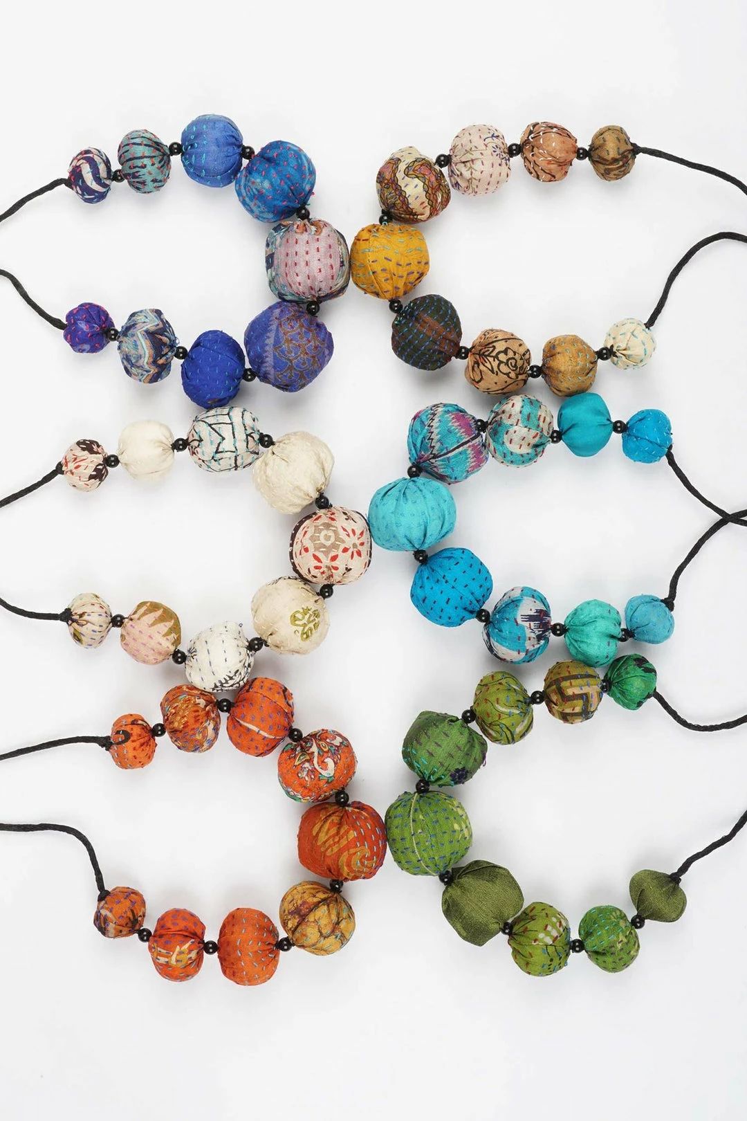 KANTHA means simple stitching in Hindi. For more than 400 years, KANTHA quilts have been made in Bengal, India using many layers of old saris. Each is unique. The items are made in India.