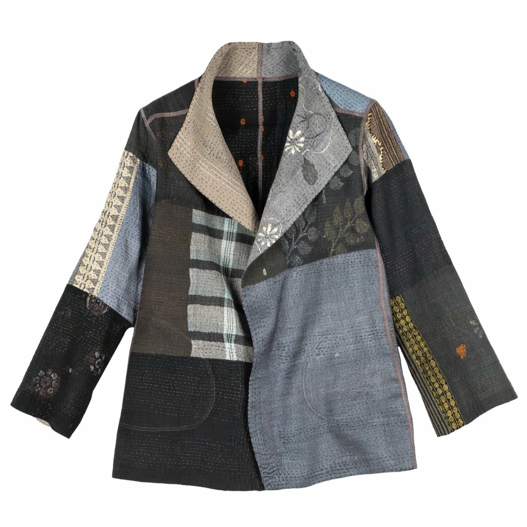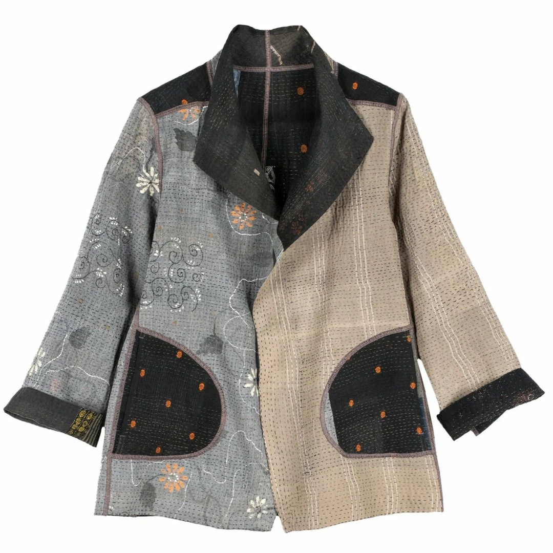 2 Layer Vintage Saris with Hand Stitches on Entire Garment - Reversible
