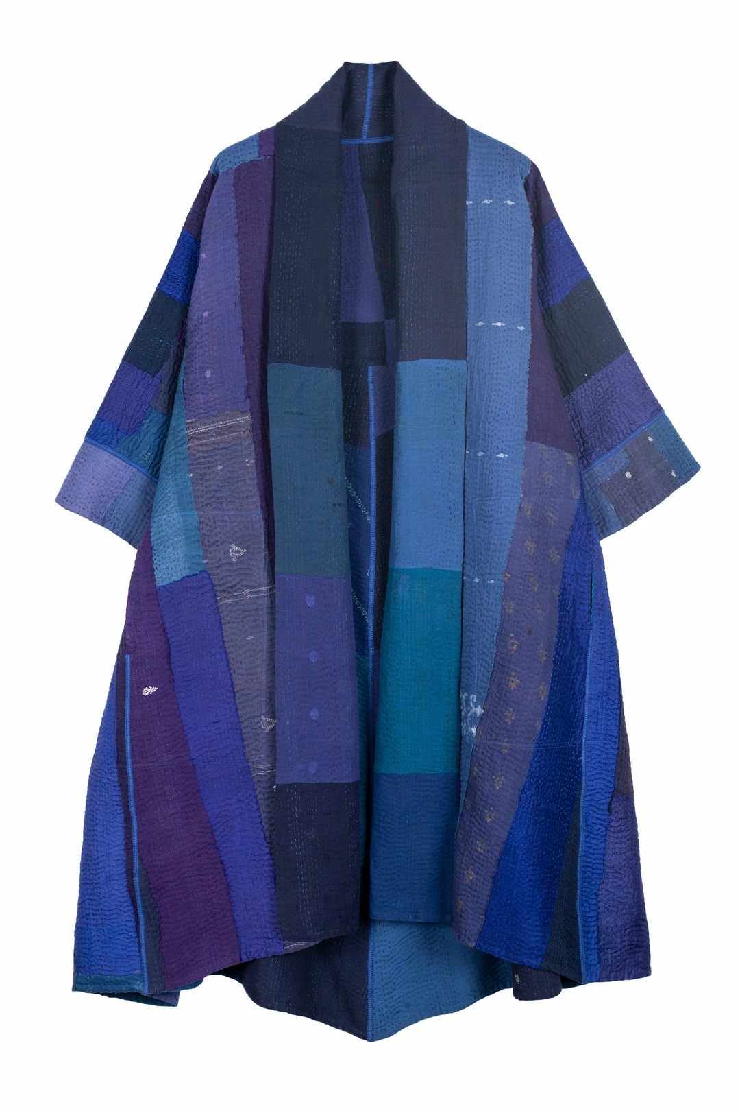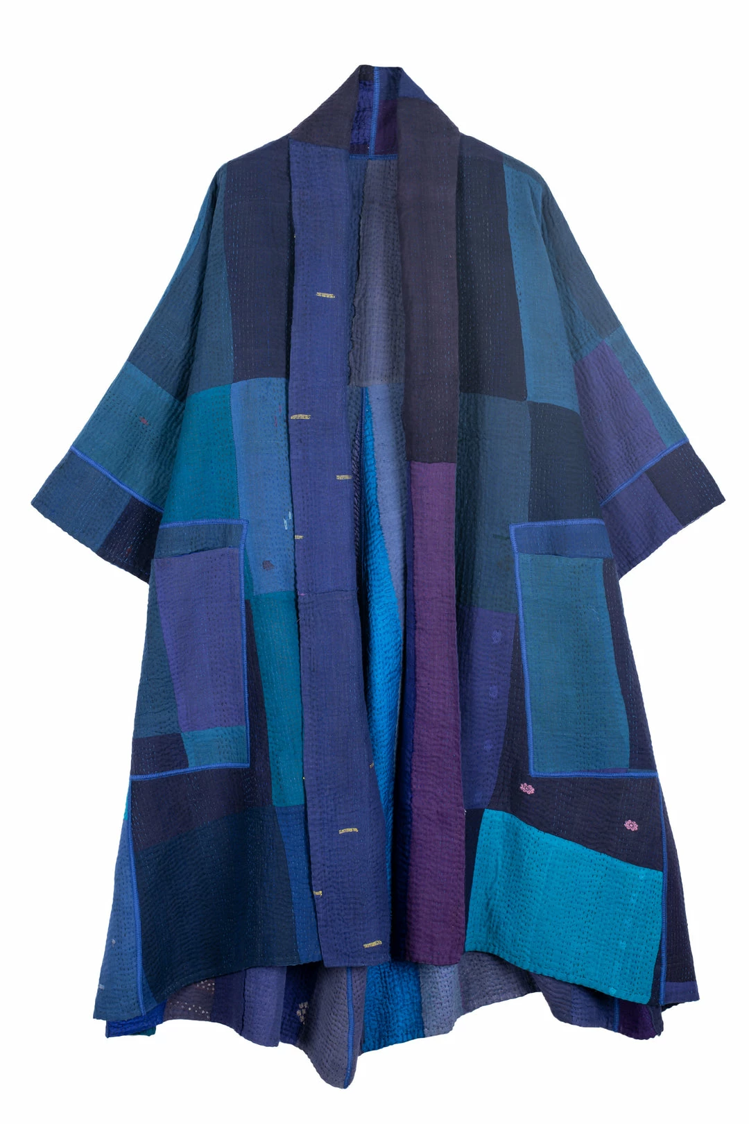 4 Layer Vintage Saris with Hand Stitches on Entire Garment - Reversible