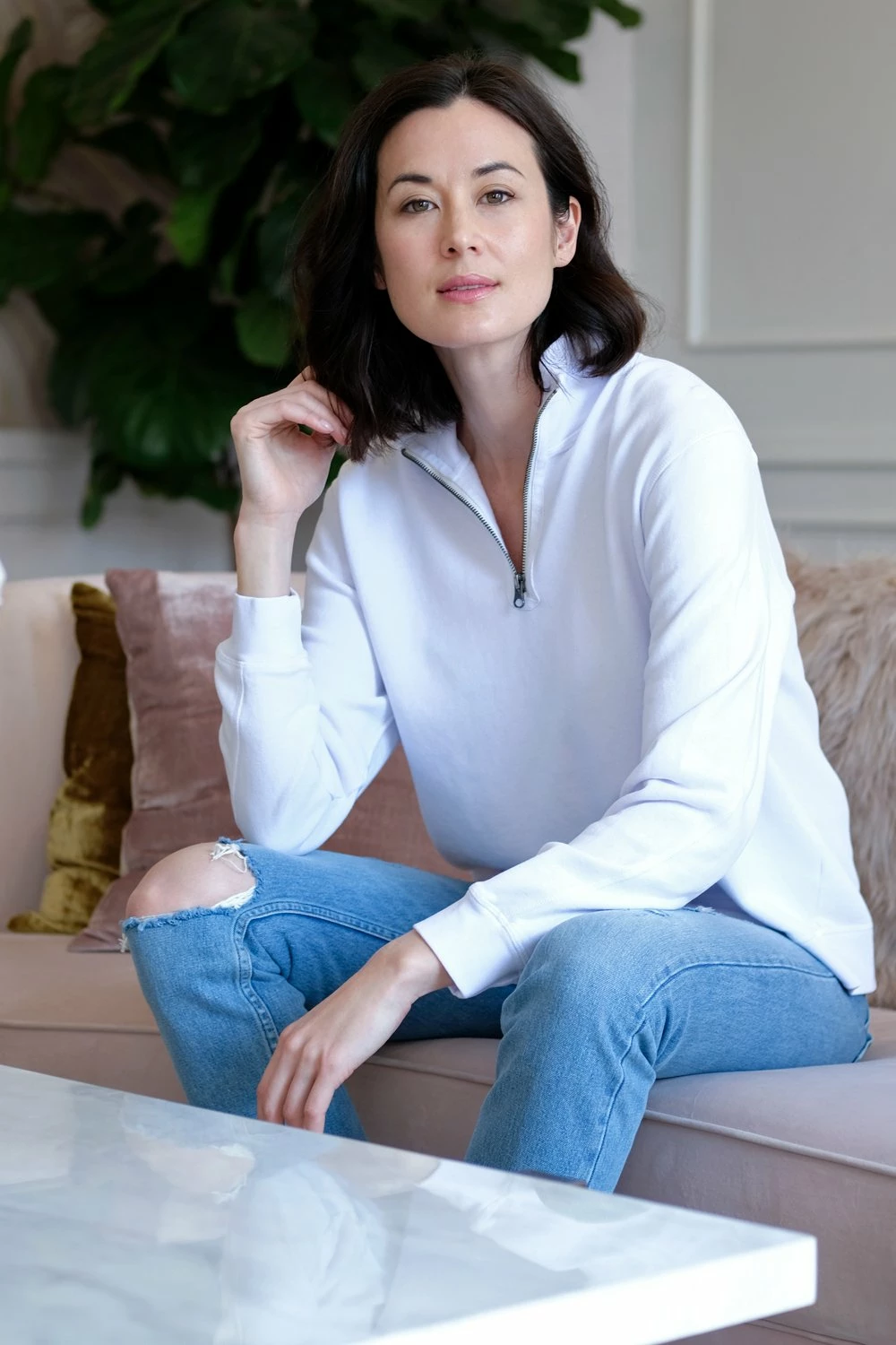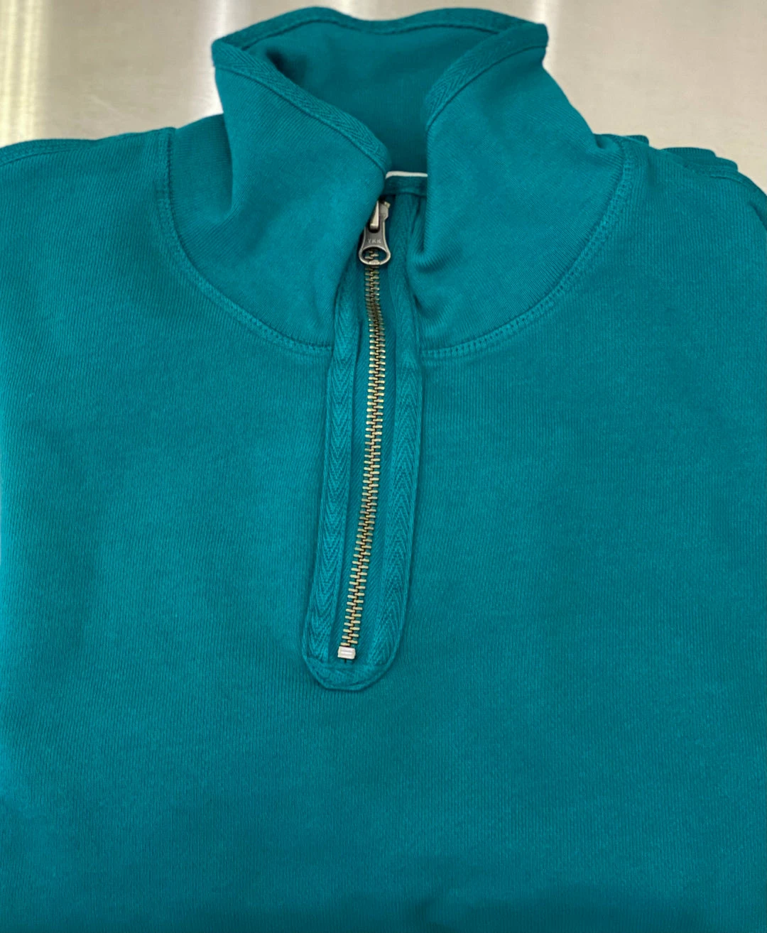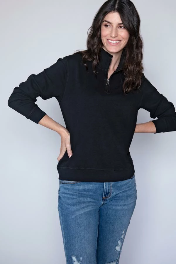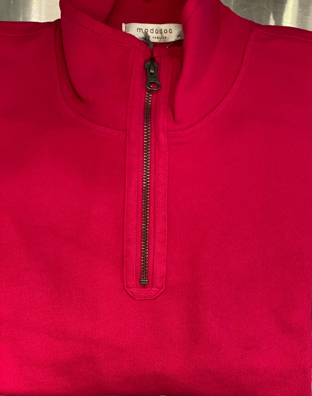 A Betsy Jenney staple- mododoc los angeles’ ½ zip funnel neck sweatshirt with a sporty feel, built from the softest french terry around and in all new colors for Spring! Easy to wear and care for in their signature French Terry Cotton.