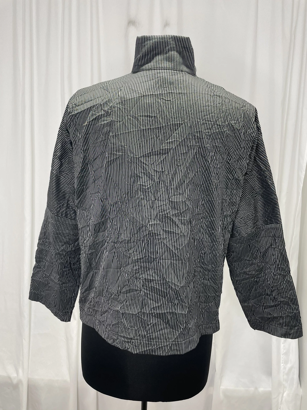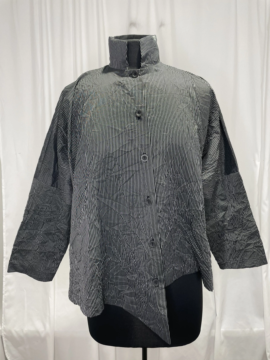 MSquare Tops Pinstripe Crinkle Assymetrical Cropped Shirt