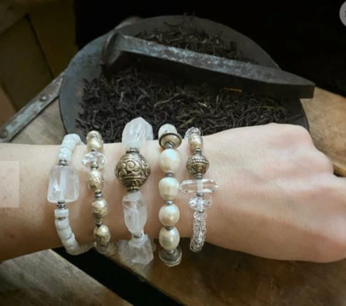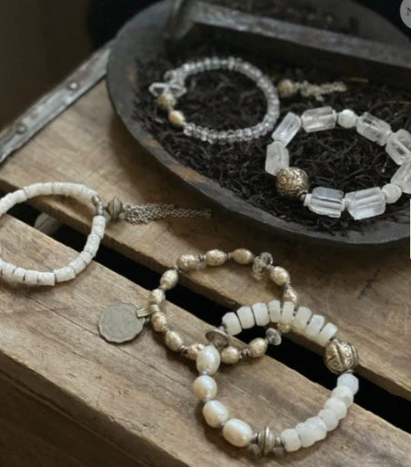 Mya Lambrecht Accessories Crystal Pearl And Patina Bracelet Set