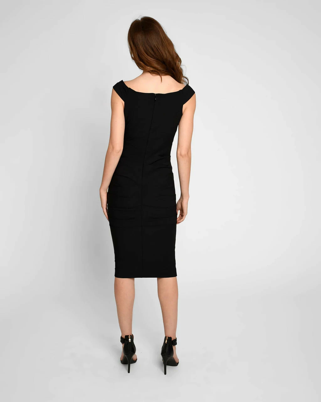 ELEGANT YET FLIRTATIOUS, THIS 2 WAY STRETCH MIDI DRESS FEATURES AN OFF-SHOULDER DESIGN AND IS DESIGNED TO FLATTER ANY NECKLINE.