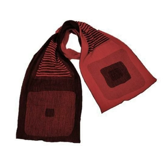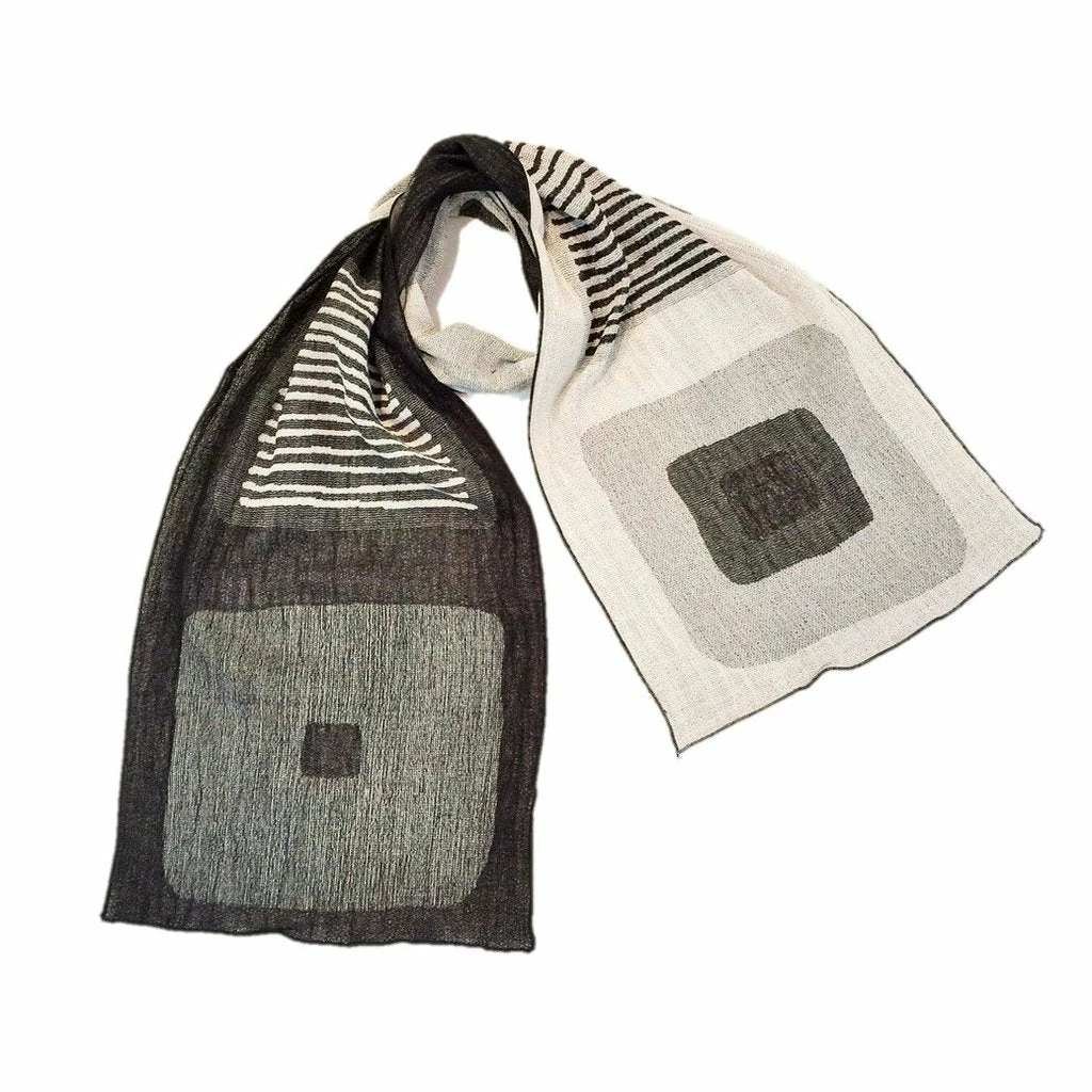 Inspired by the way ink bleeds on Japanese washi paper, this cotton jacquard scarf combines several different weave structures to achieve similar tonalities of color.