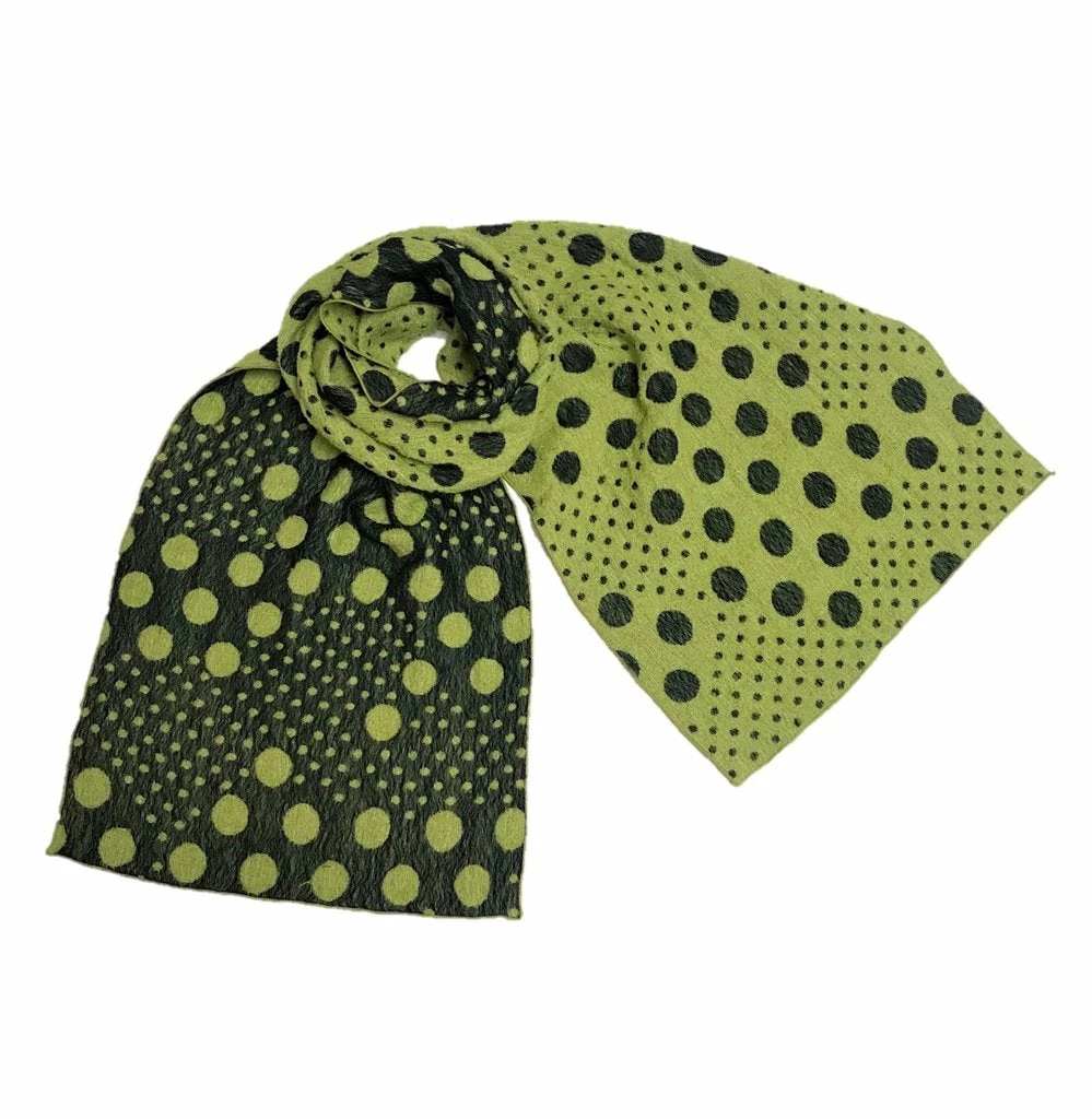 On her walk through the park one breezy fall morning, NUNO head designer Reiko Sudo glanced up to see sunlight filtering through the fluttering foliage. This seemingly mundane experience triggered her imagination to create the “Leaves” scarf. Perfect for soft, gentle warmth on chilly autumn days!