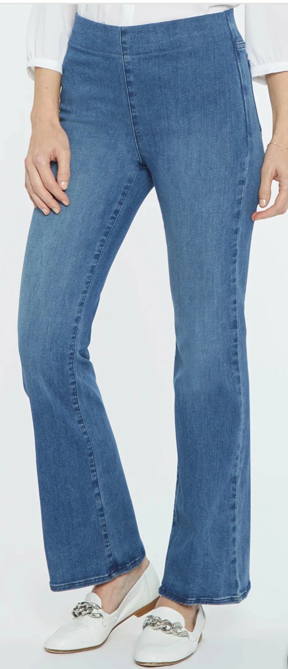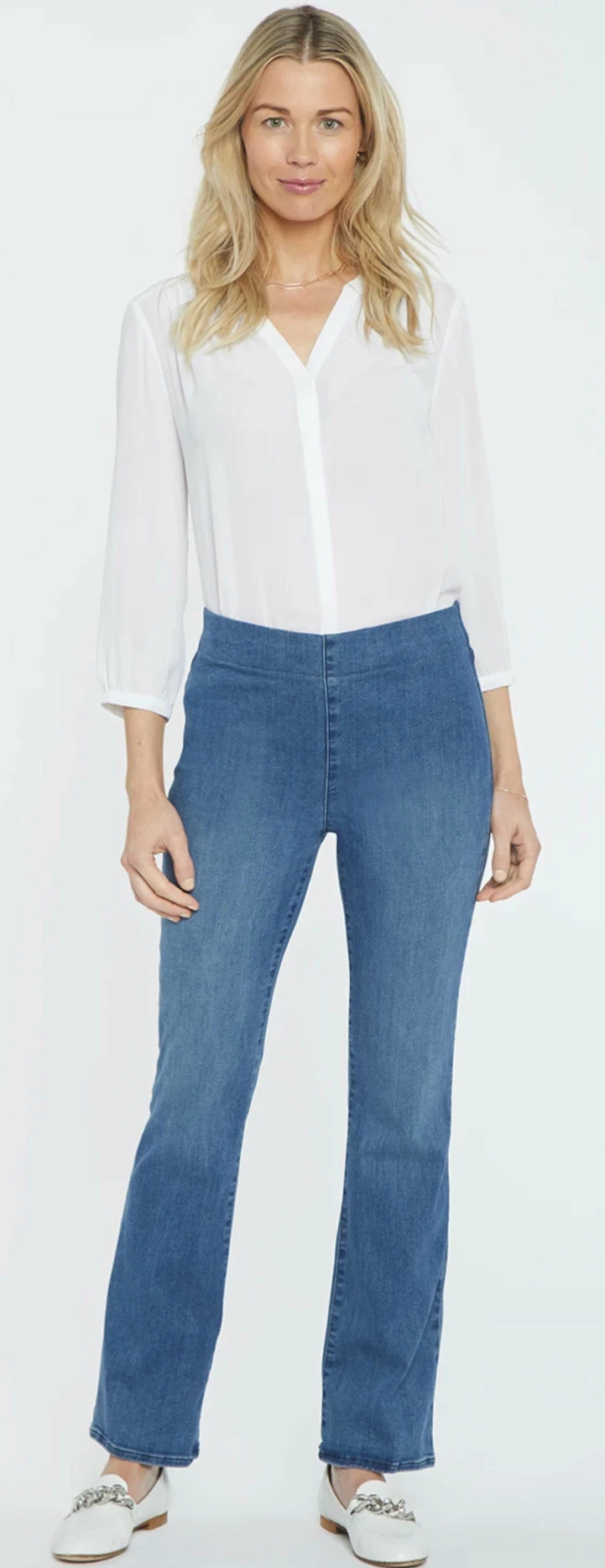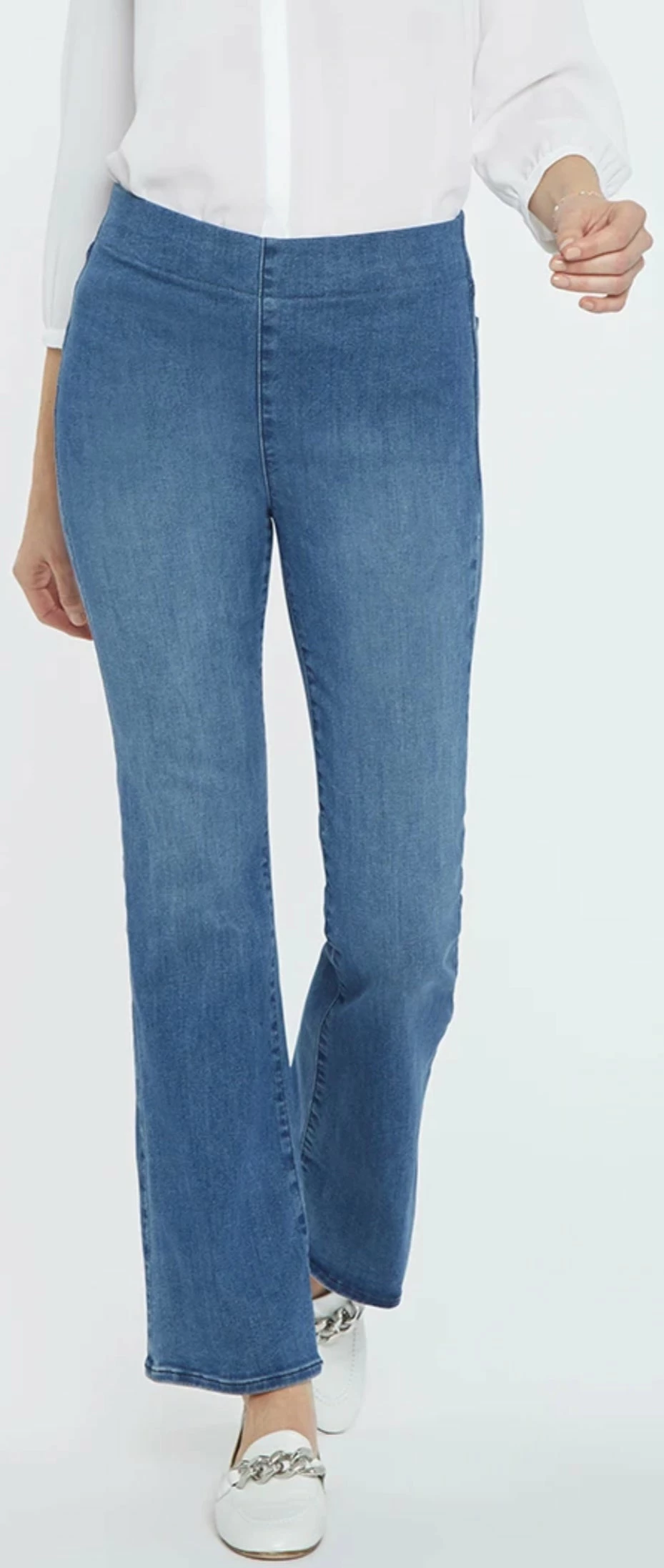 SpanSpring™ styles adapt to you and not the other way around. Made from our most expandable denim, which stretches up to three sizes and recovers with ease to its original shape, NYDJ’s Ava Flared Pull-On Jeans in SpanSpring™ Denim have your curves covered even when your body changes. They’re also highly flattering thanks to our signature Lift Tuck® Technology, which uses a proprietary inner panel with a patented criss-cross design to flatten in front and lift in back. These fabulously comfortable and stretchy jeans feature an on-trend silhouette that hugs the waist, hips and thighs, then flares out at the hem for a bold statement. Finished with an effortless pull-on waistband as well as functional back pockets.
