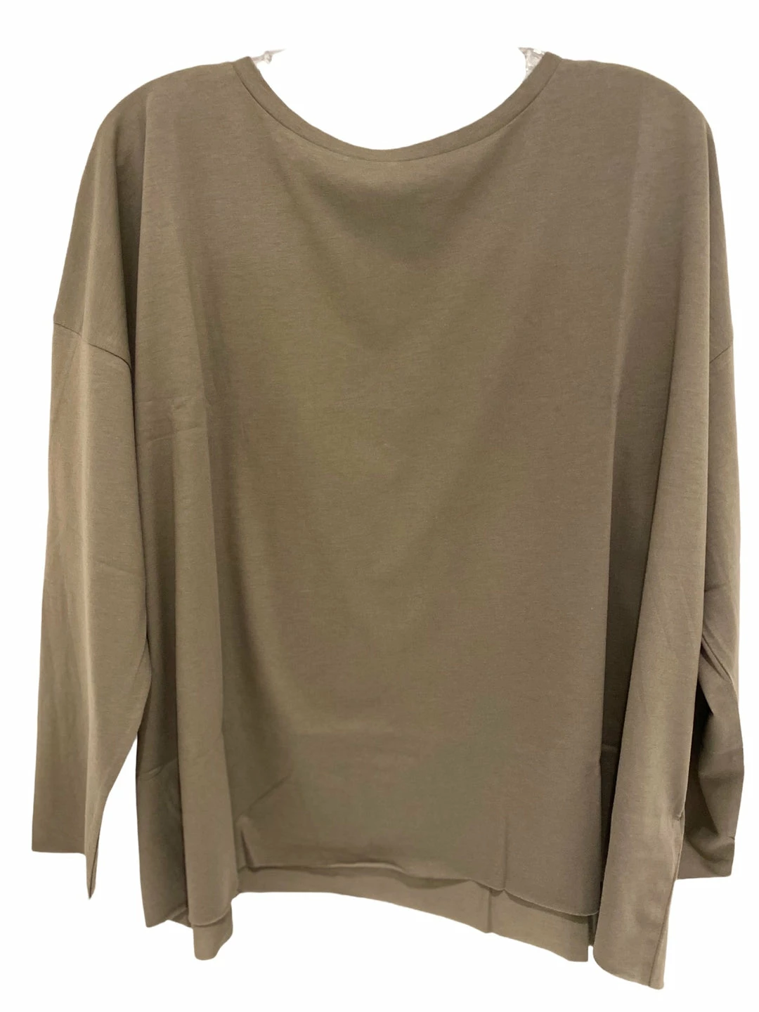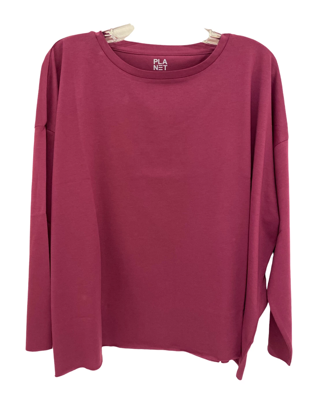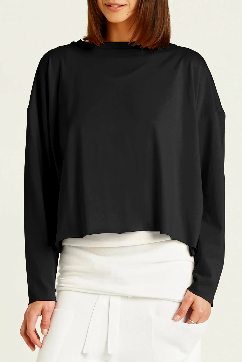 Planet designs are of the finest natural fabrics made of pure luxury in soft pima cotton. The Boxy Tee is a beloved classic with a short boxy body and dropped sleeves. High round neckline has soft cross-over detail at sides. Unfinished detail at the cuffs and hemline. This boxy tee is a Betsy Jenney staple for our customers.