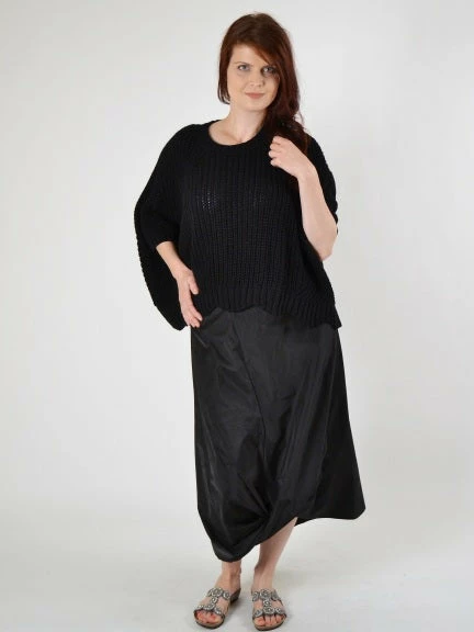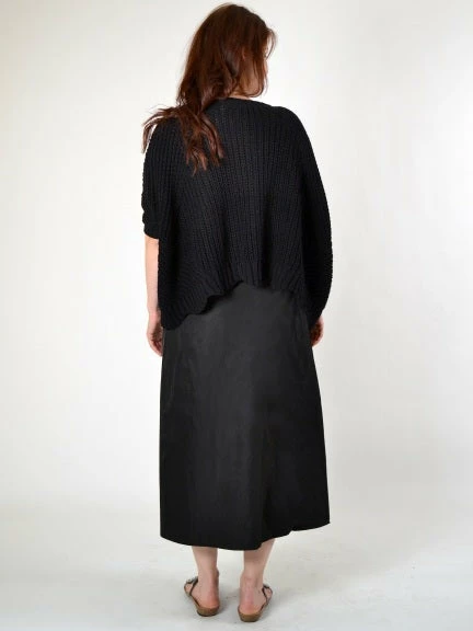 A slim column skirt features a crossover front panel, wide waistband and angled seam. Made of 100% nylon.