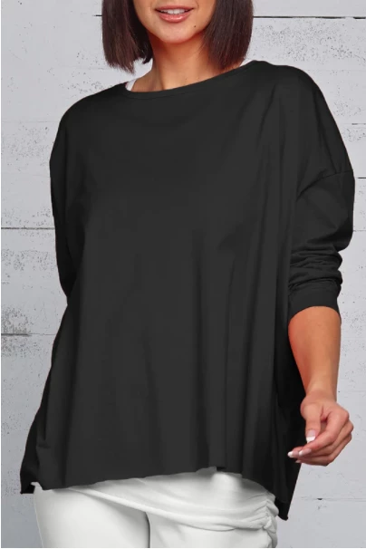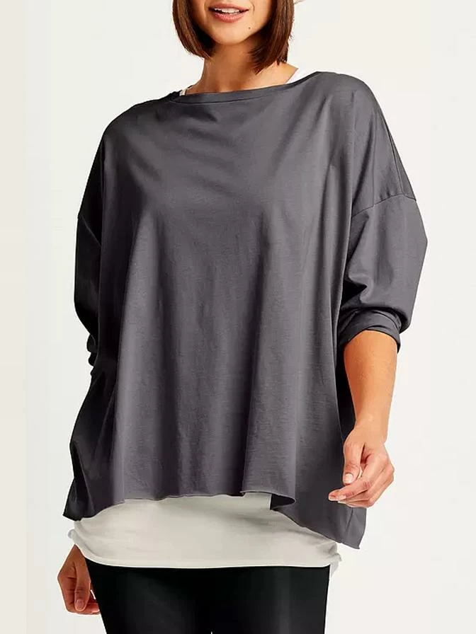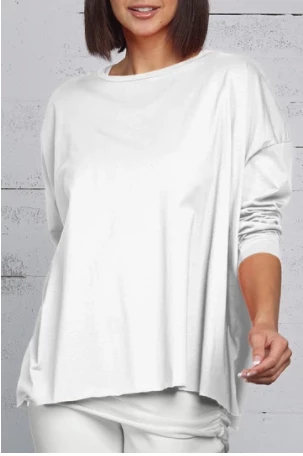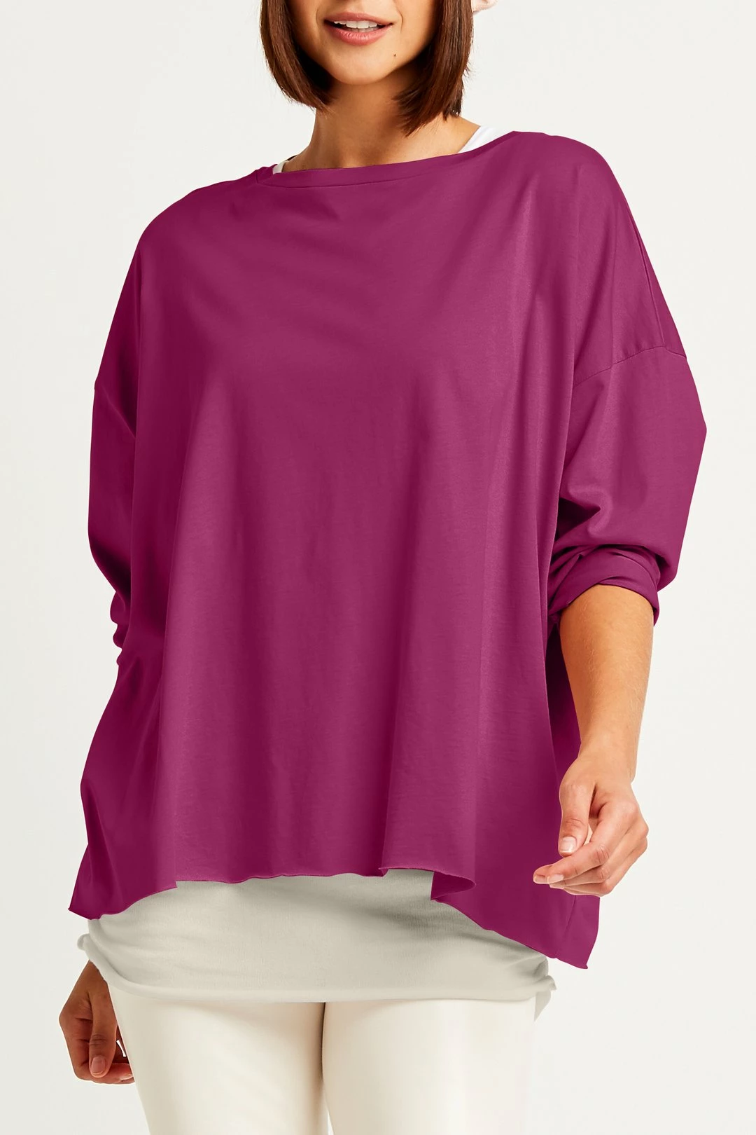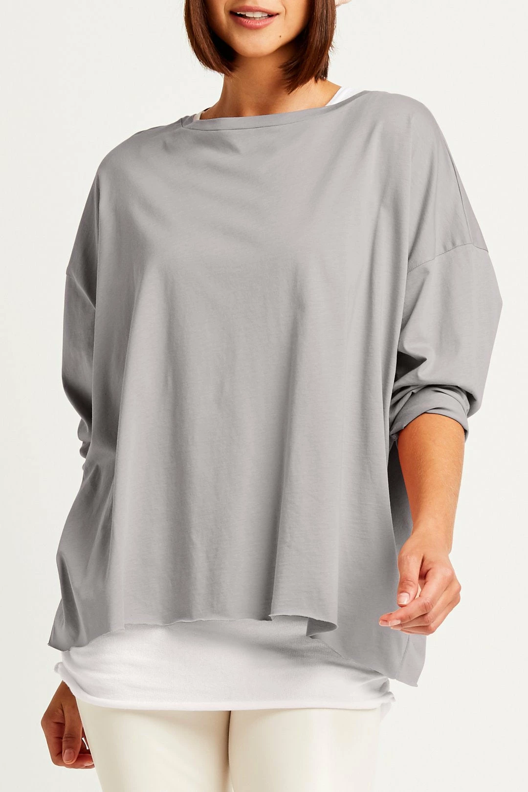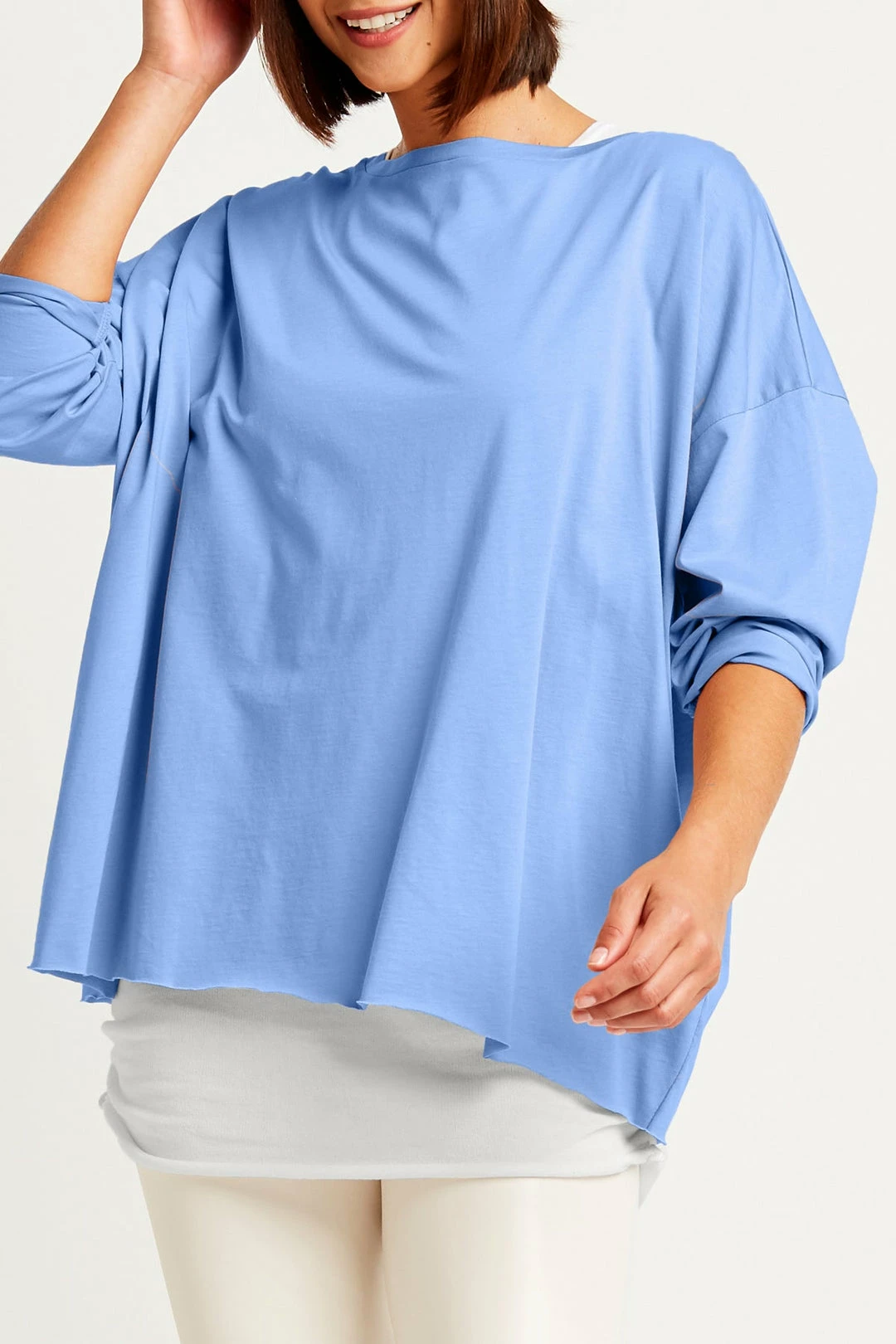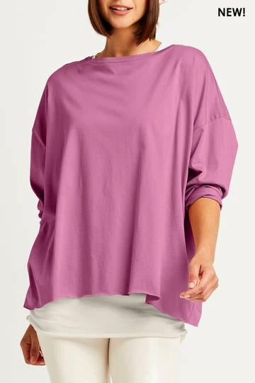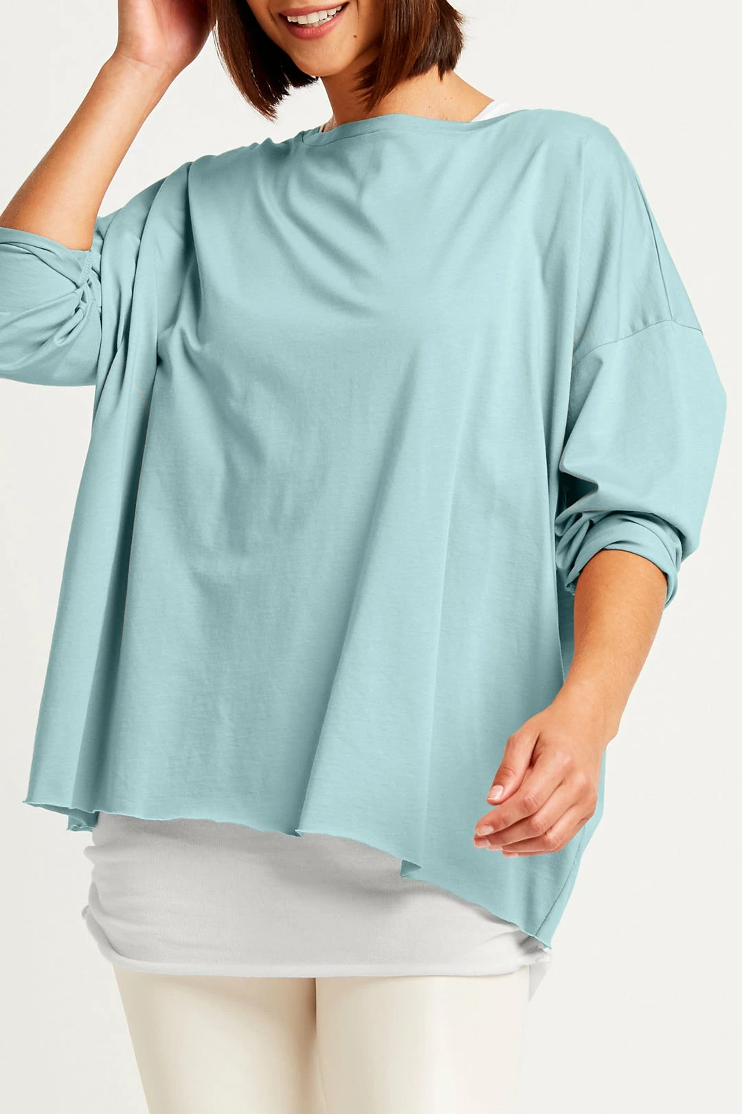 Planet designs are of the finest natural fabrics made of pure luxury in soft pima cotton. The Boxy Tee is a beloved classic with a short boxy body and dropped sleeves. High round neckline has soft cross-over detail at sides. Unfinished detail at the cuffs and hemline. This boxy tee is a Betsy Jenney staple for our customers.