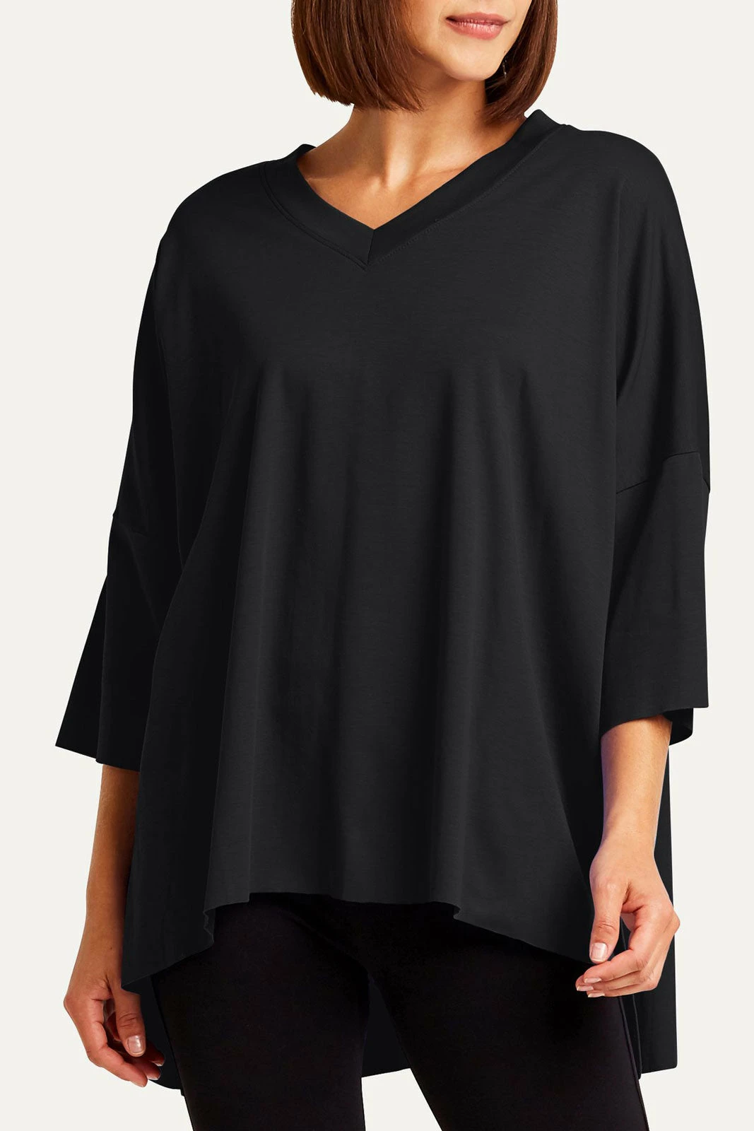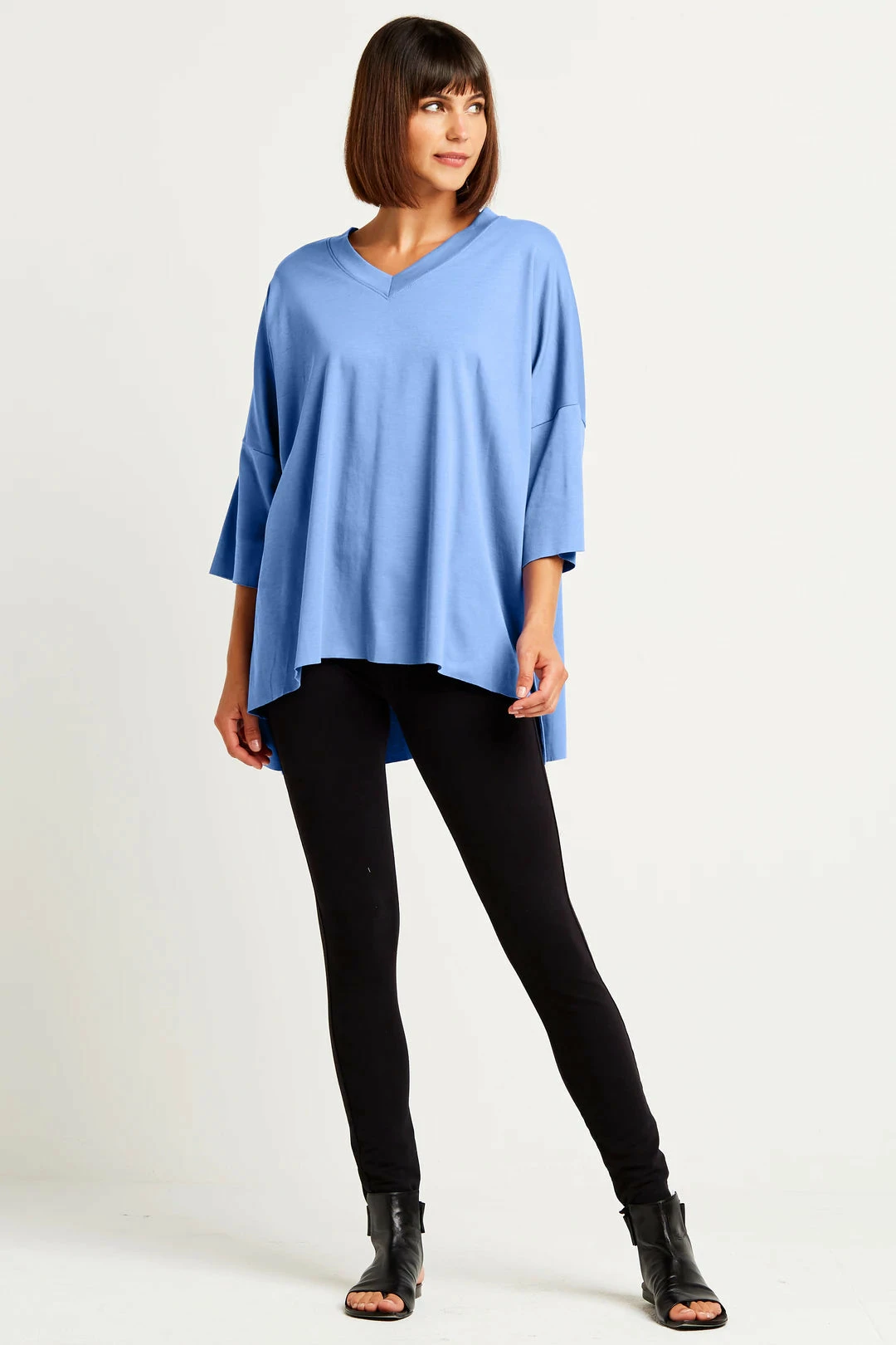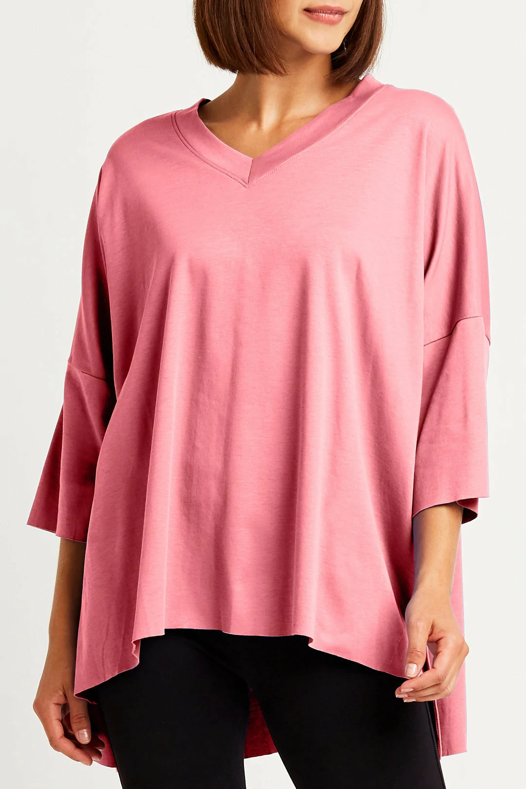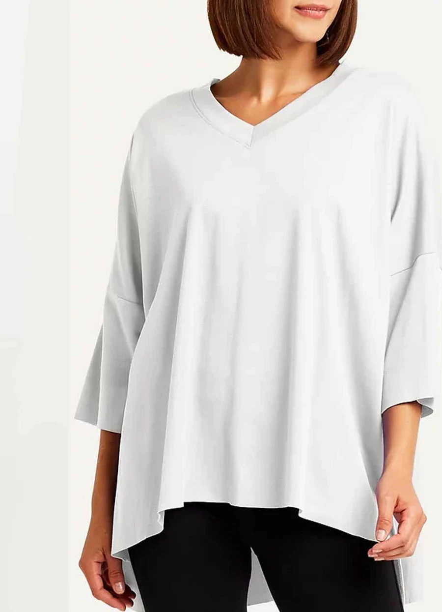 The Planet Short Sleeve V T is a new favorite basic from Planet’s Spa Collection. This one size fits all tee is the same body as the ORB T, with a V neckline and without the dot. It features a V-neckline and a bi-level hem with flowing drop sleeves that fall below the elbow.