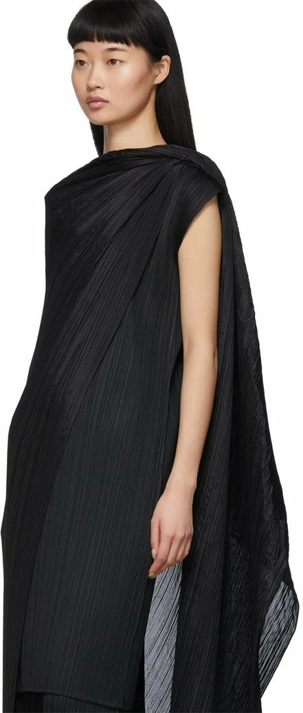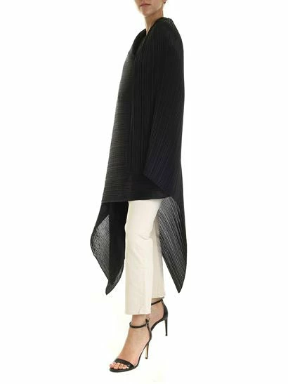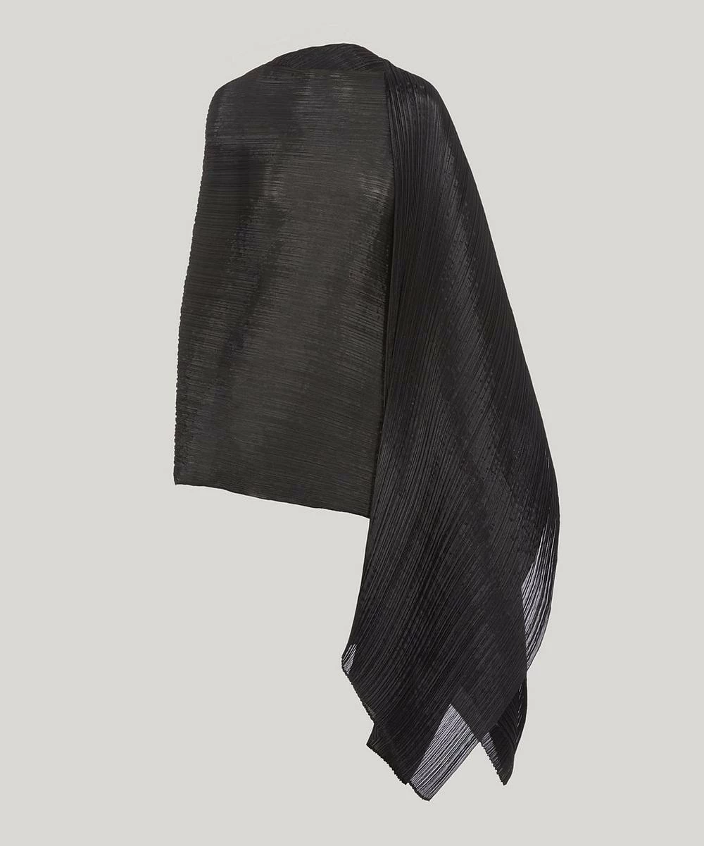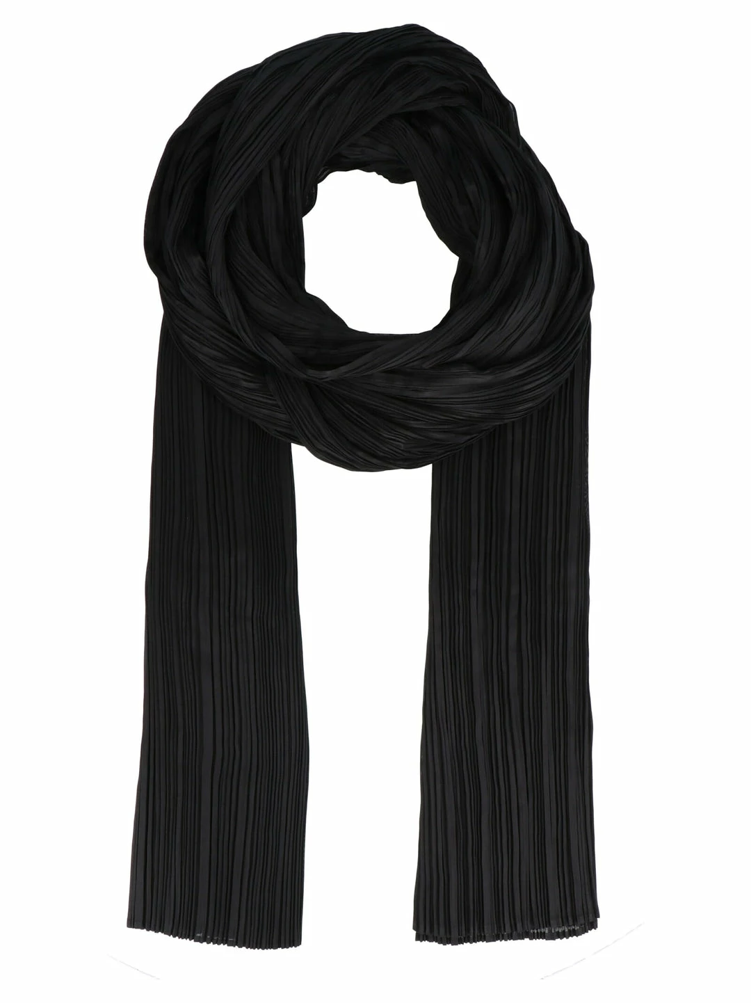 Convertible garment-pleated scarf. Neck opening for alternate styling at length. Approx. 107″ length x 33.5″ width.