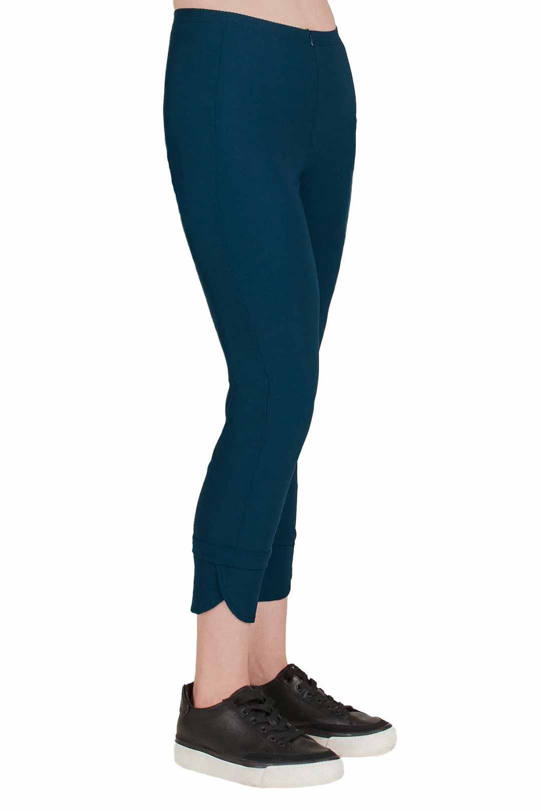Porto Gallivant Pant in Jet Jersey with hem cutout detail and a slimmer leg. Shown in Tahitis but Available in Urchin Vertigo only.