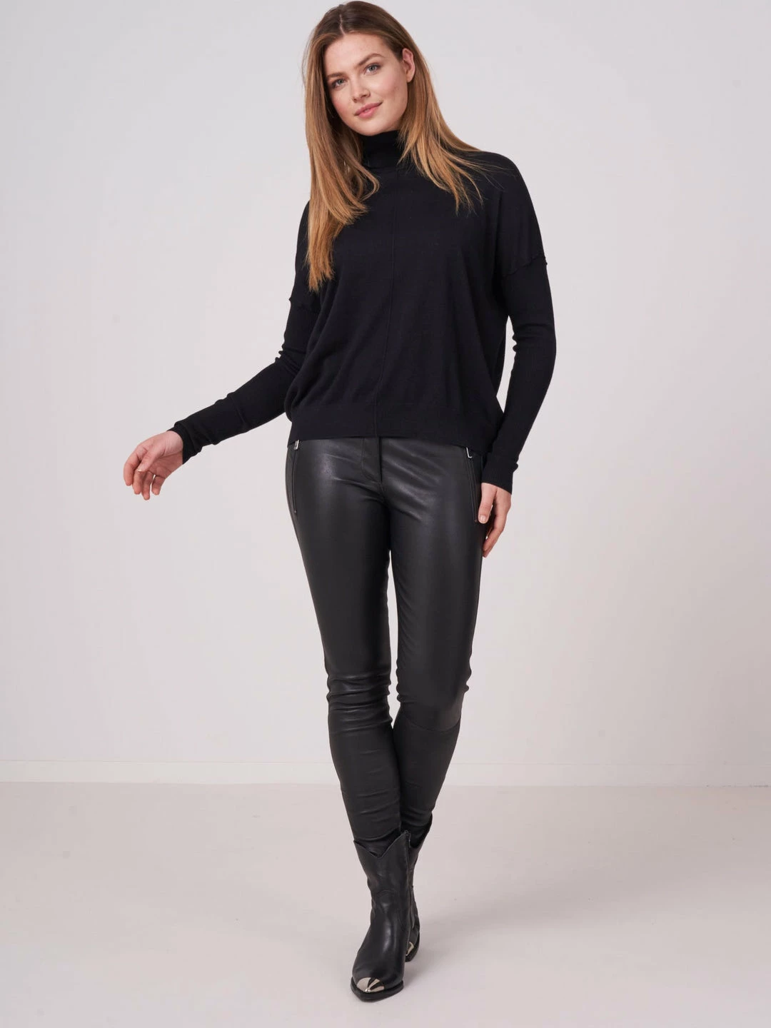 - Ribbed turtleneck