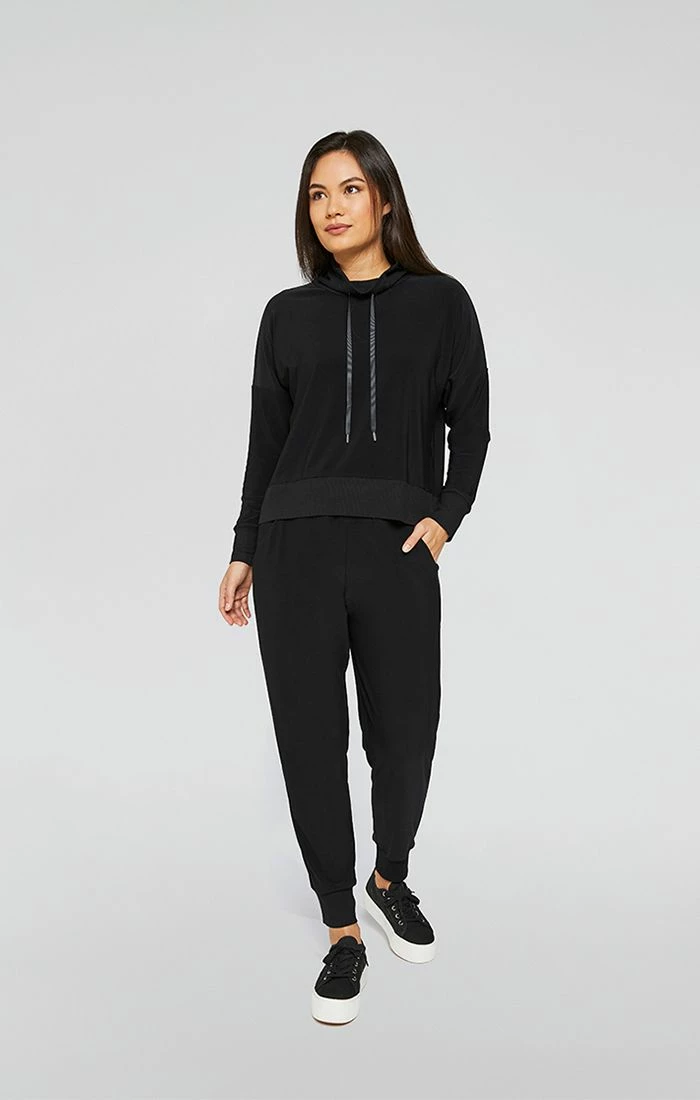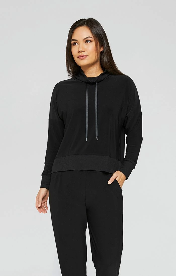 The Motion Sweatshirt is an easy, comfortable style in a boxy fit. It features our soft rib on the cuffs, hem and collar. The ribbon drawstring with gunmetal tips adds an athleisure twist.