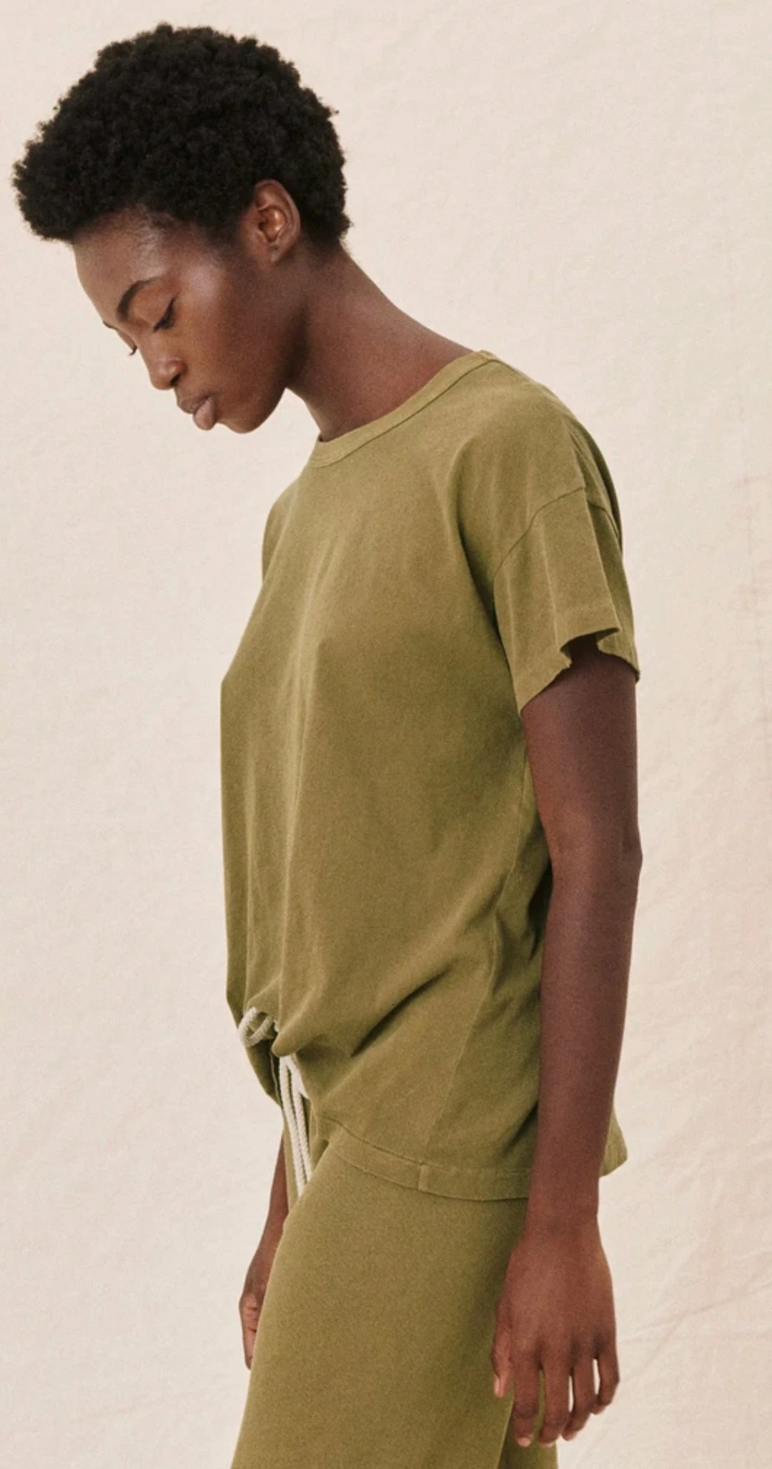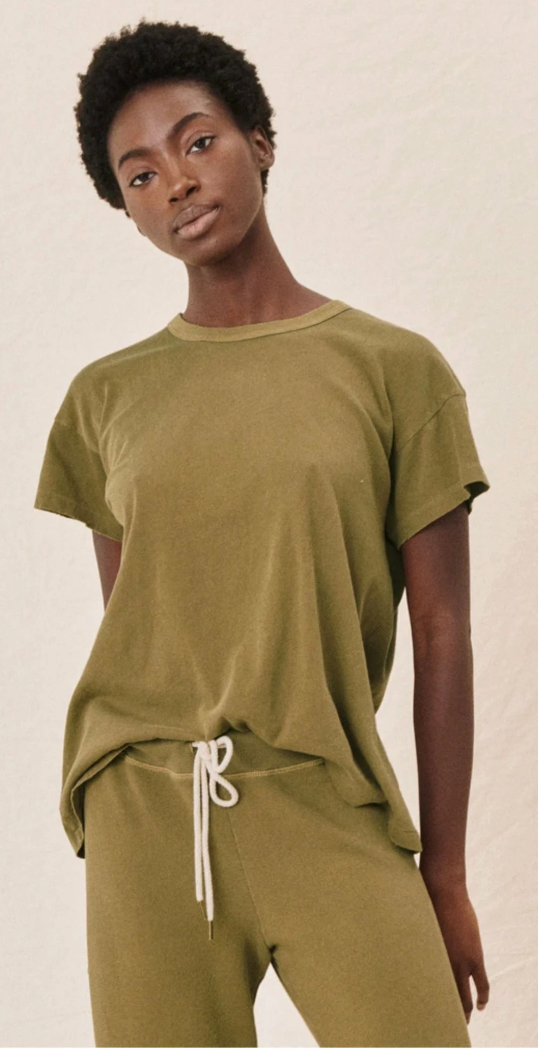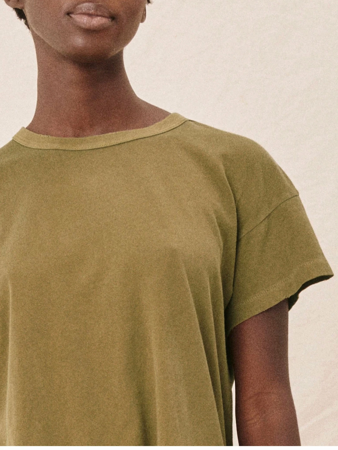 This perfect tee is a bit more narrow and a touch longer than our classic boxy crew. It is straight through the body and has all the softness and detailing of a timeless vintage tee.