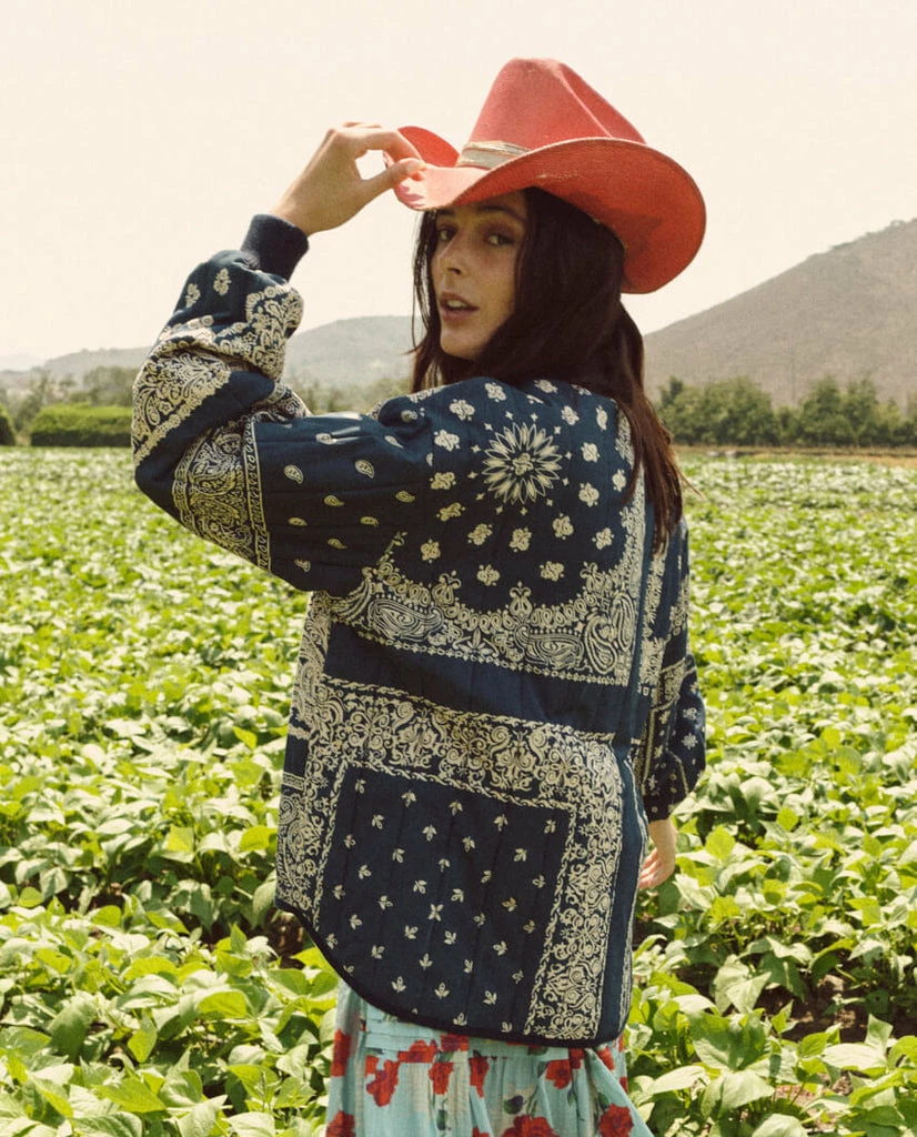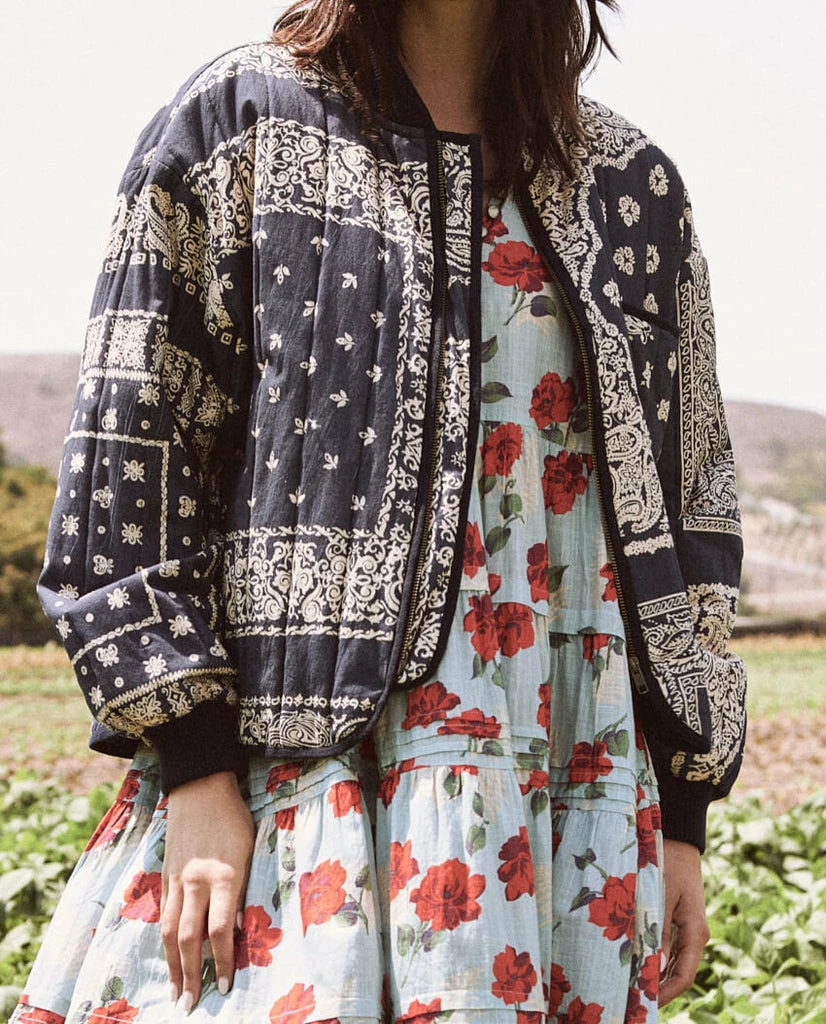 The Spring 2022 Collection releases a new print, Bandana. Cut from super-soft cotton voile, the print is reminiscent of vintage Americana quilts, pieced together using bandanas.