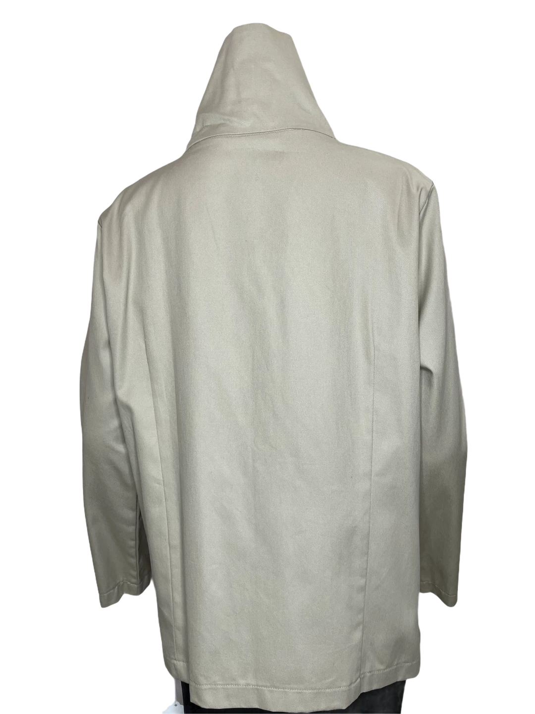 Vitamin Zip Front jacket in Sand signature twill, all season, travel and leisure crop with dolman sleeves, front pockets and flattering swing. A Betsy Jenney staple!
